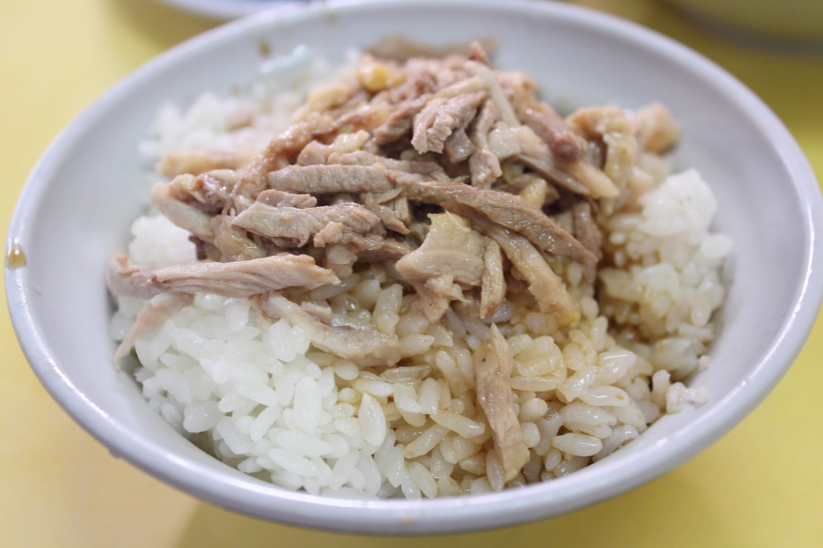 鴨肉飯上的鴨肉絲有瘦有肥還有帶皮的,鴨肉絲會用布蓋著要用時才翻開