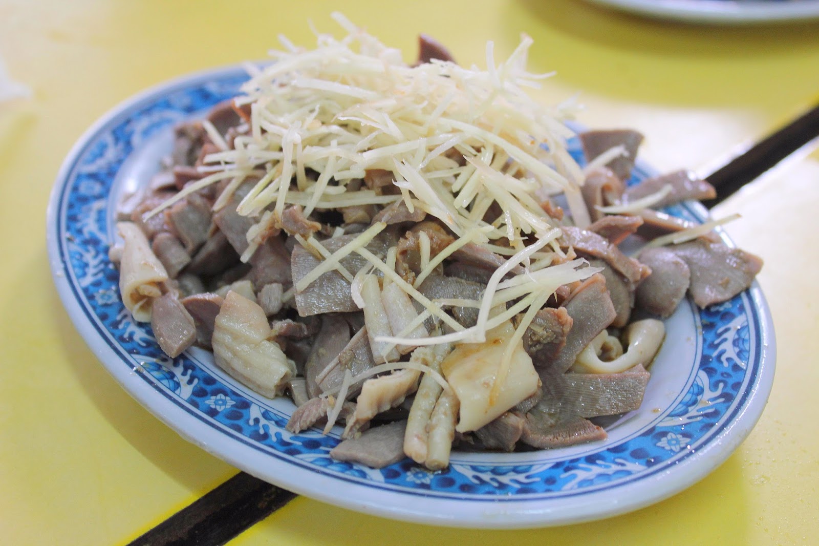 燙下水盤有脆脆的鴨胗還有QQ的鴨腸搭配薑絲沾著醬吃,