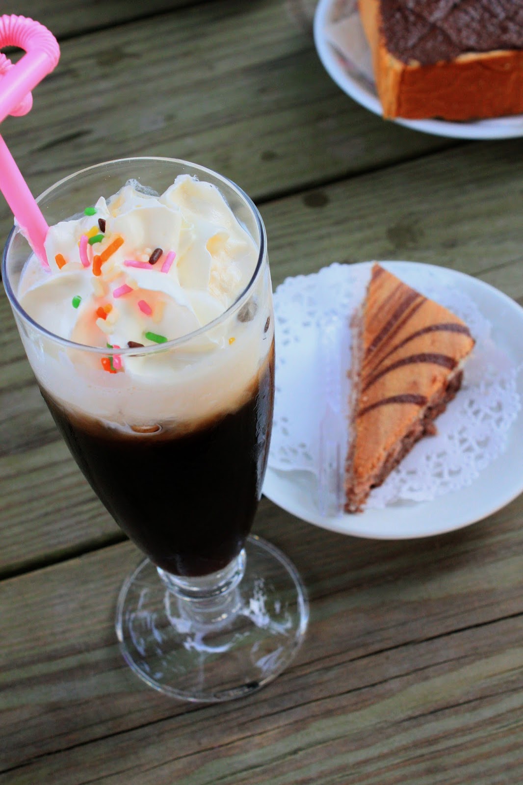 黑咖啡上擠了鮮奶油,老闆的建議喝法:別急著攪拌先吸一口底下的黑咖啡,咖啡口感香醇微苦吞下口後會回甘口腔中滿是咖啡香氣,再均勻攪拌,咖啡因種植地域不同會有酸、甘、苦、香、醇5種口感,這杯屬5種都平均的口感算是很親民的咖啡,