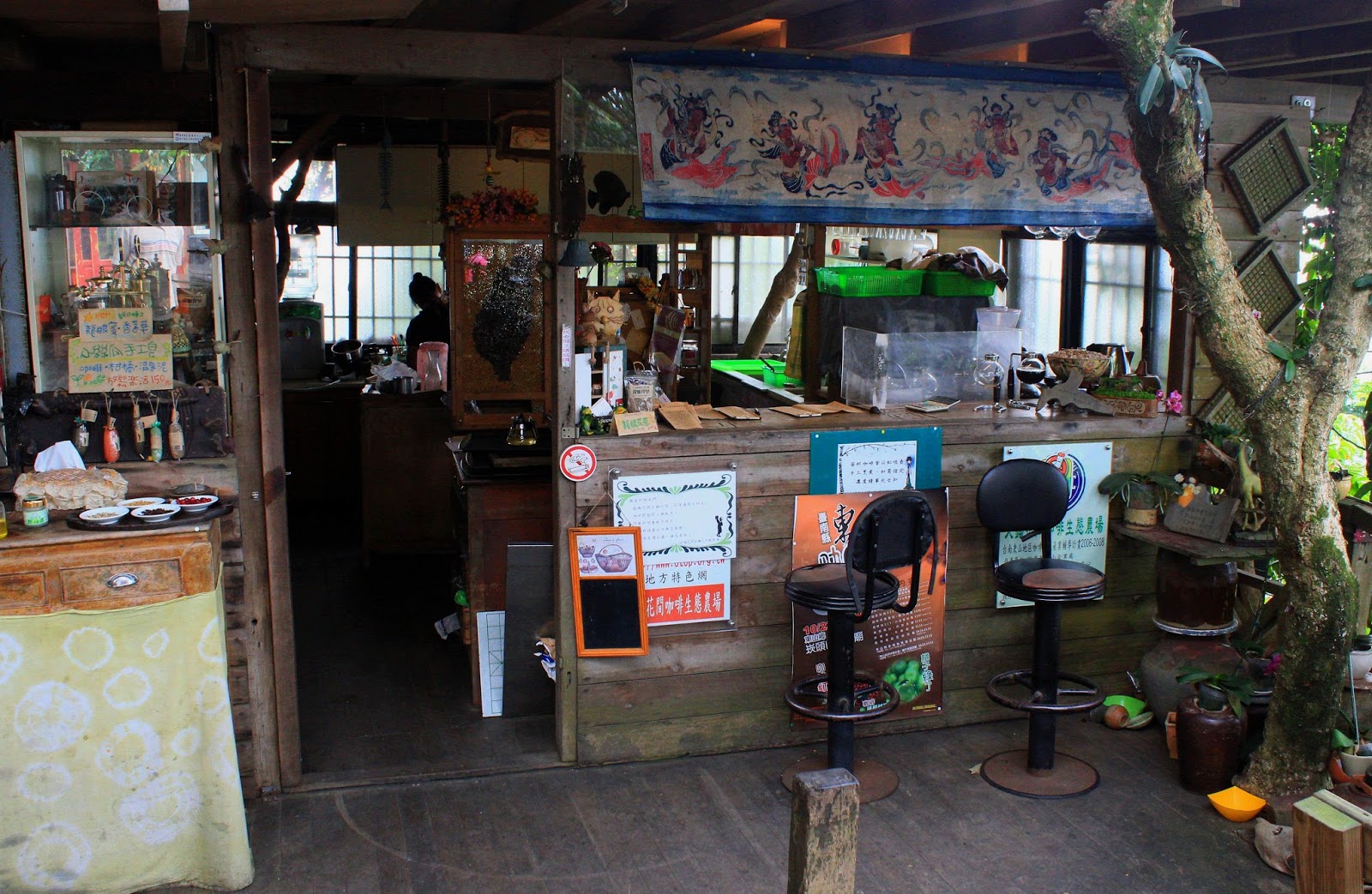 繞了一圈不難發現店裡裝潢跟桌椅都是老闆親手用木材或原木製作,