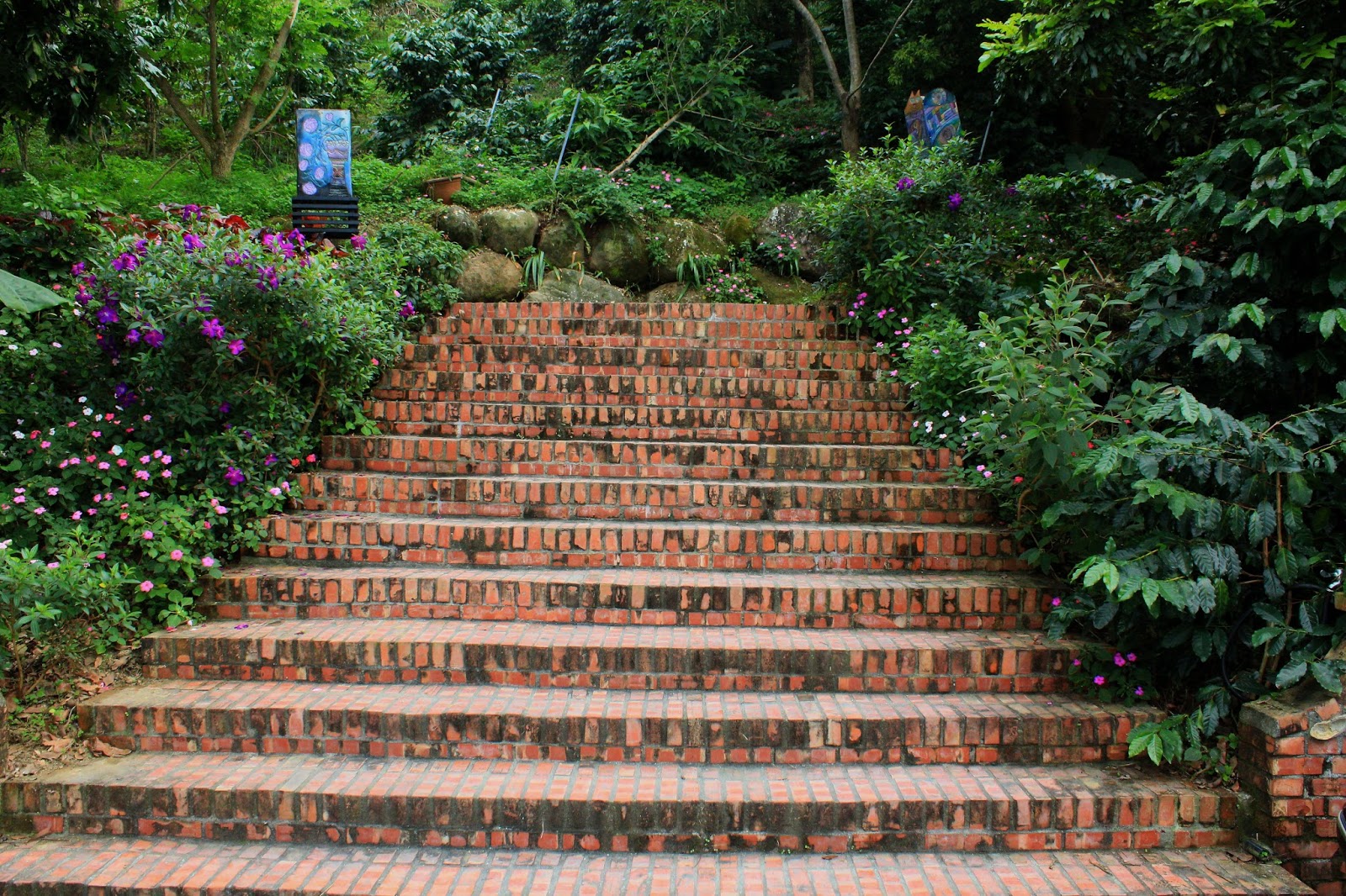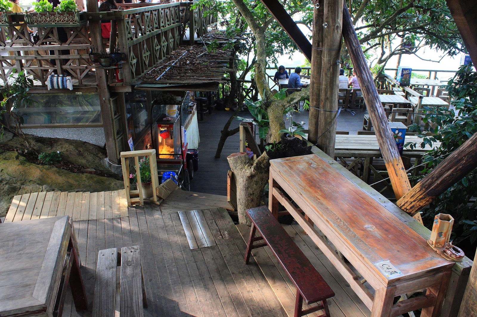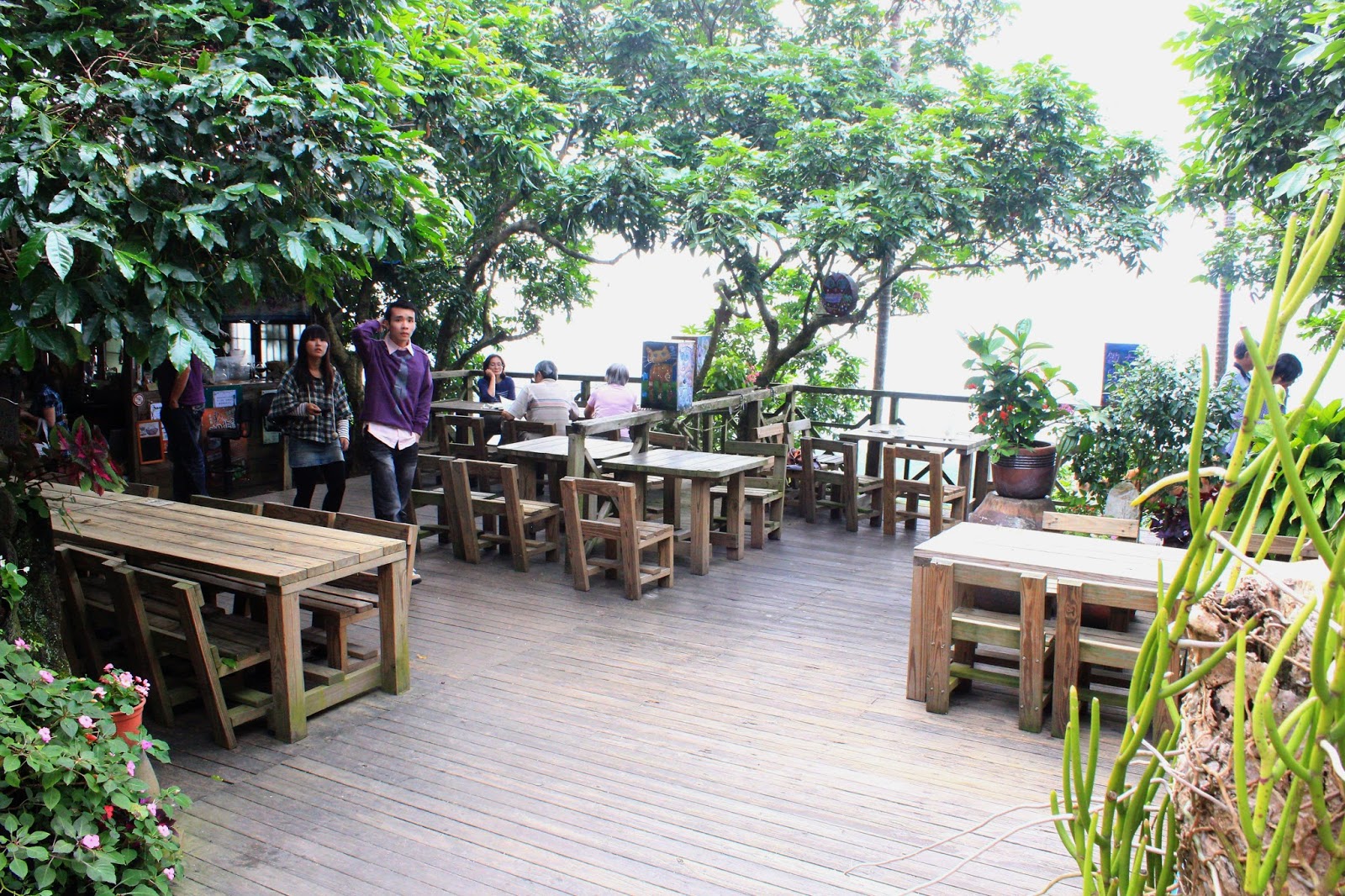 往上走一點穿過綠蔭隧道才看得到咖啡店,