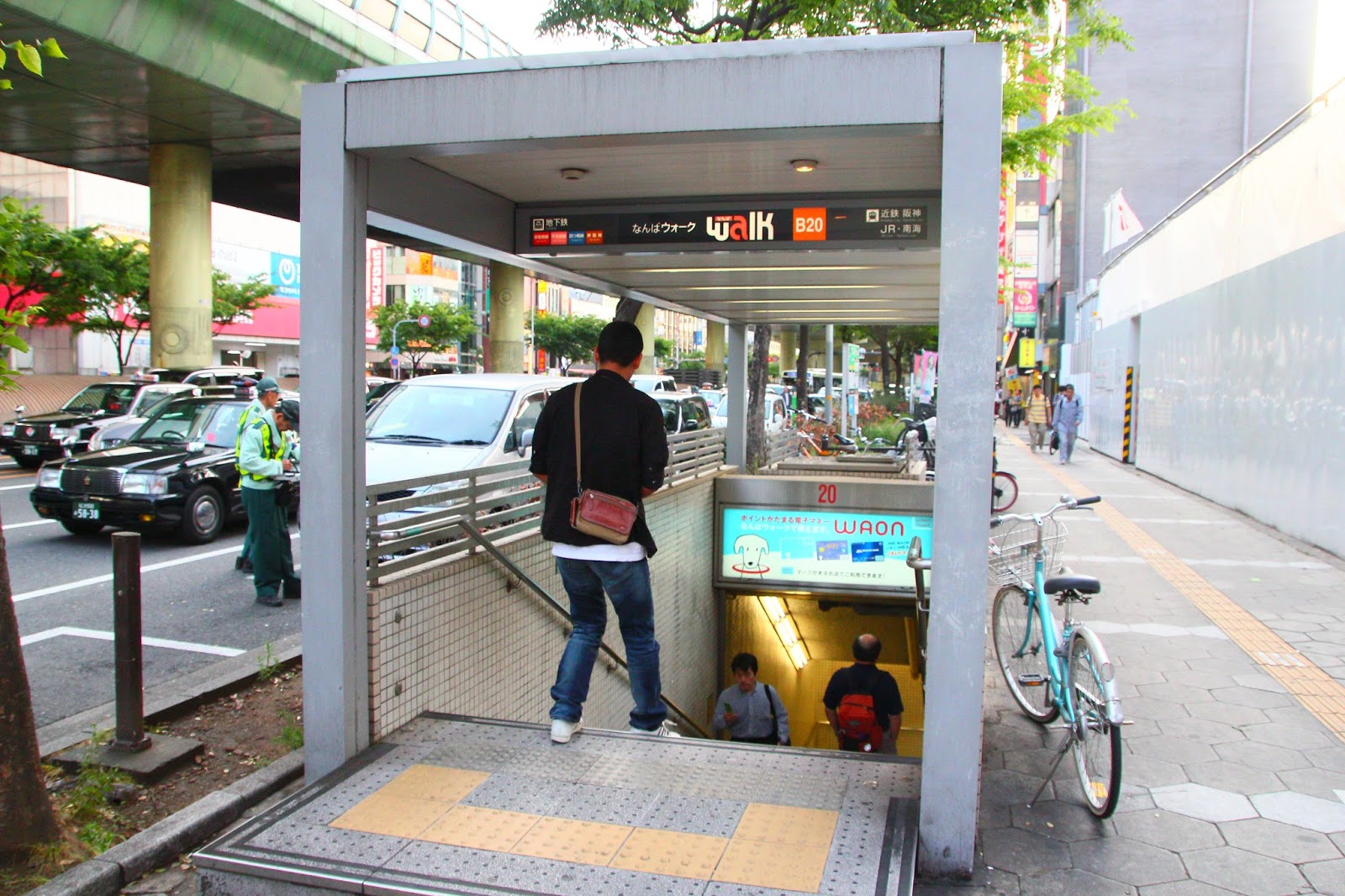 首先筆者是先坐JR線到大阪駛(站)然後一出站馬上衝去逛百貨公司((喂!!)),一出站往下走往地下鐵搭御堂筋線至難波站,坐到難波的站名順序是這樣的, 梅田→ 淀屋橋→ 本町→ 心齋橋→ なんば(難波)到達難波站走B20號出口,
