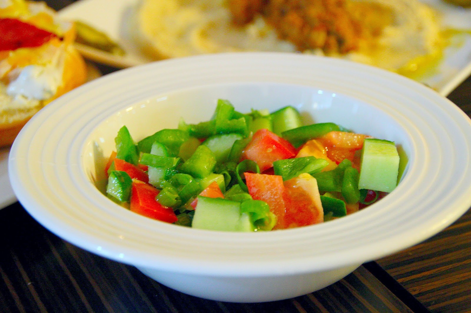 以色列夏日沙拉顏色很鮮豔配上清淡的醬汁,如果有不喜愛的蔬食記得先跟老闆說歐!
