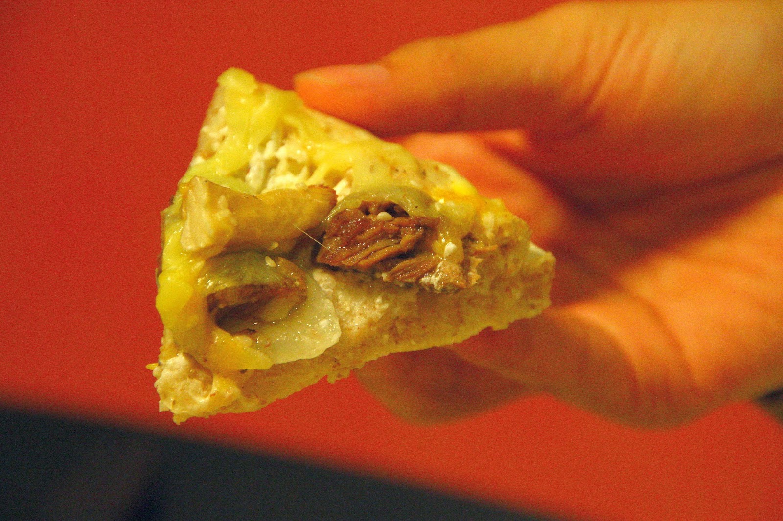 厚實Pita餅上舖滿各式美味的材料,再進烤箱烤一下讓整體口味更加融合,