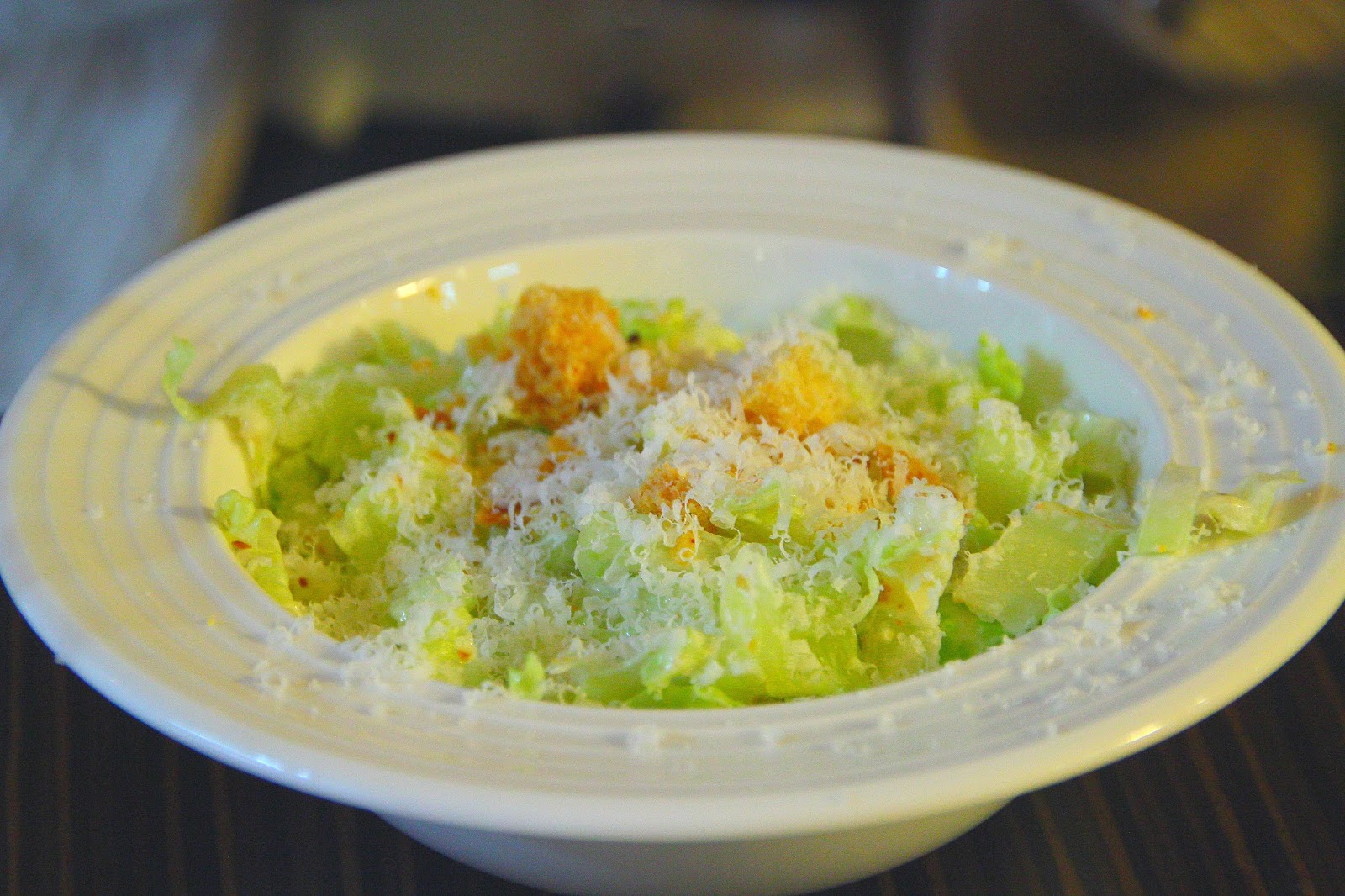 凱薩沙拉搭配美生菜爽脆口感再加上現刨的起司,視覺、嗅覺、味覺都到位了,
