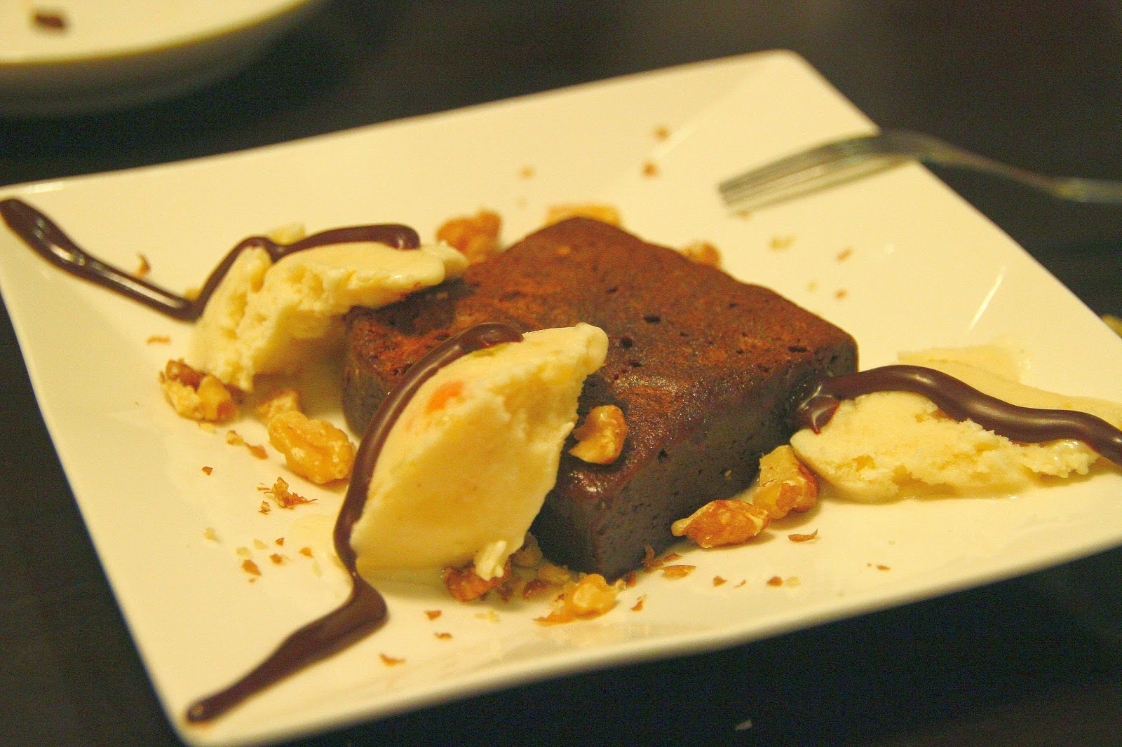 天氣熱時搭配冰淇淋跟核桃,冰淇淋讓口感更滑潤,布朗尼跟核桃的風味吃完後還舒服的留在口中,