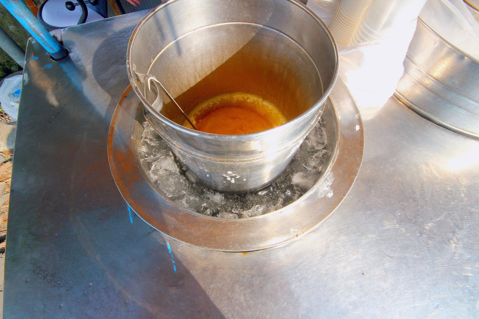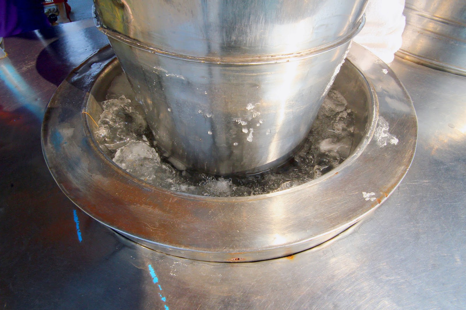 桶子是被一圈加鹽冰包圍,可以看到都下午了檯子裡的冰還沒融光呢!