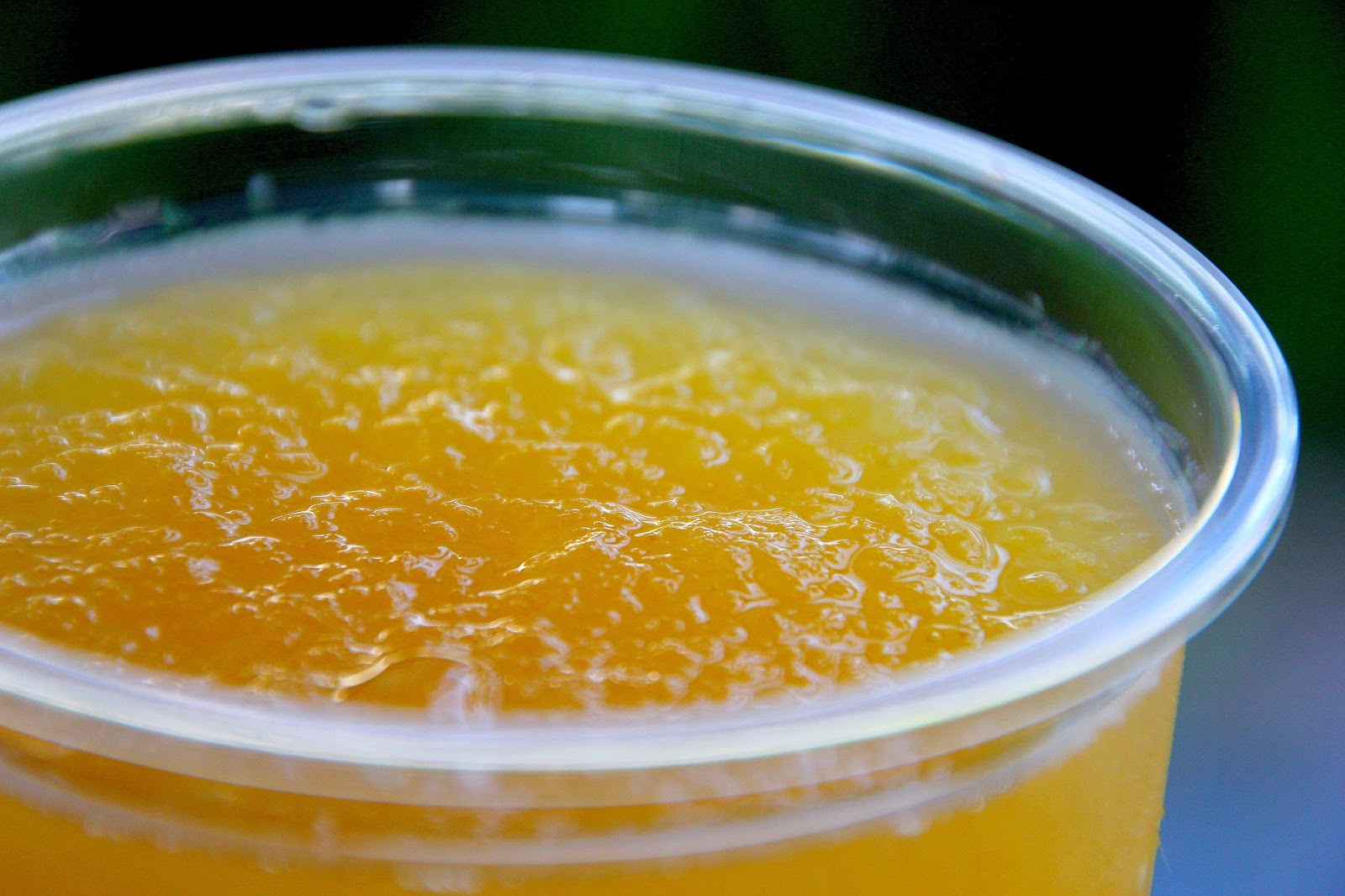近看這果汁霜結晶大小跟飲料店的冰沙完全不一樣,手搖冰口感更輕薄,當你想咬它時它就融化了,