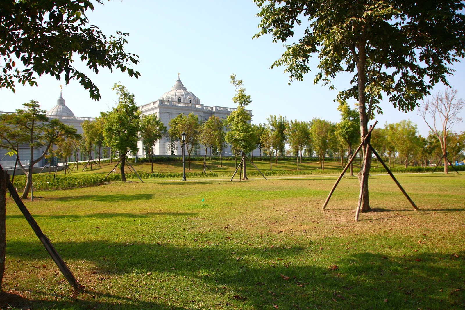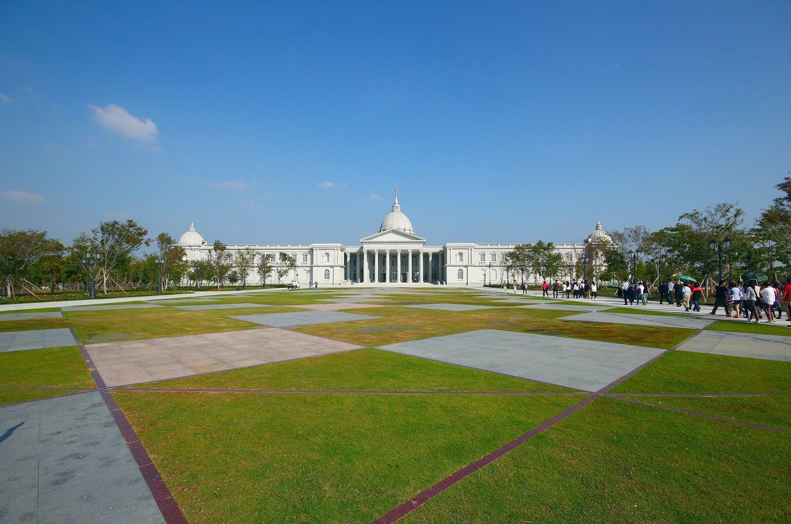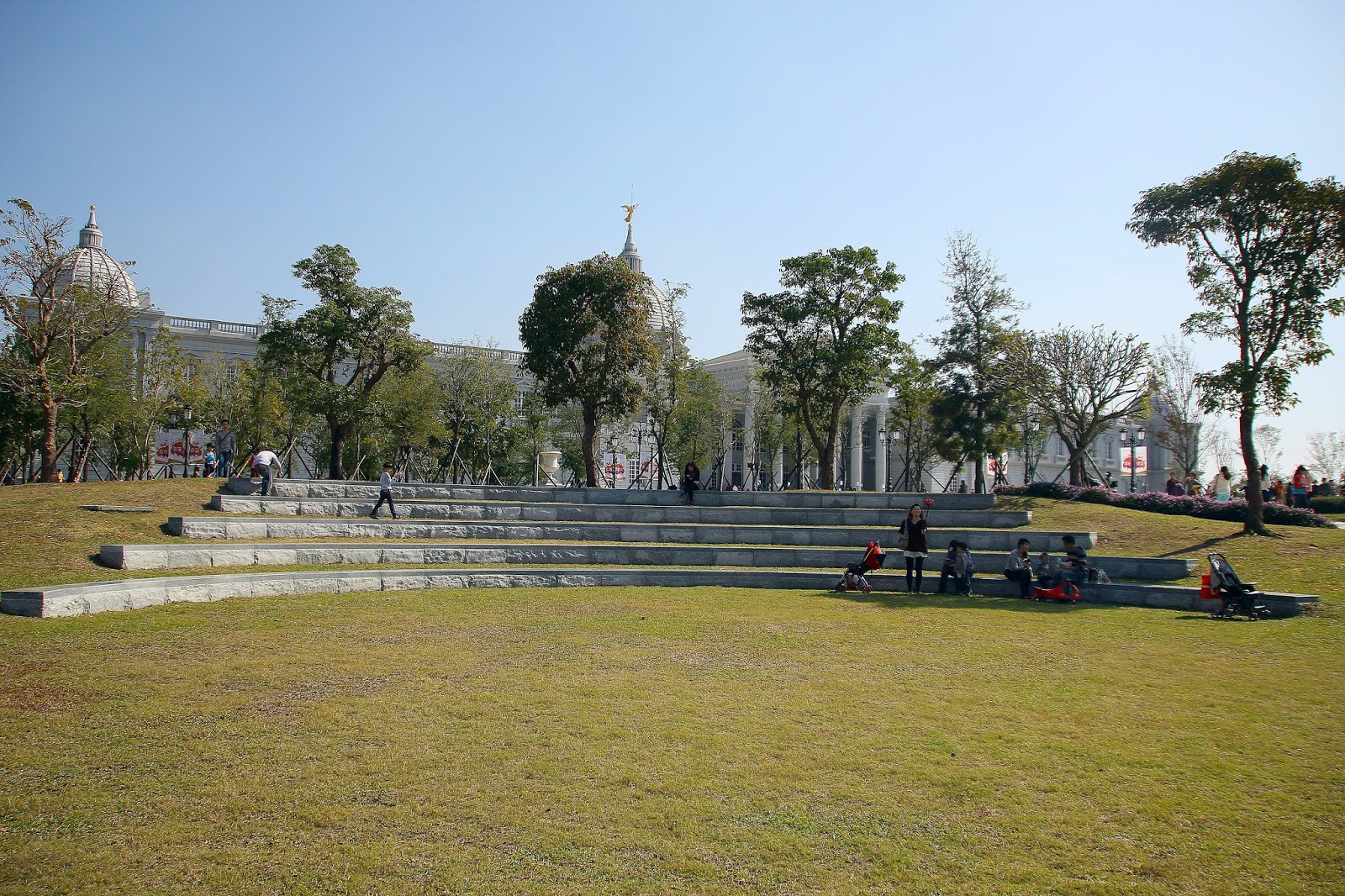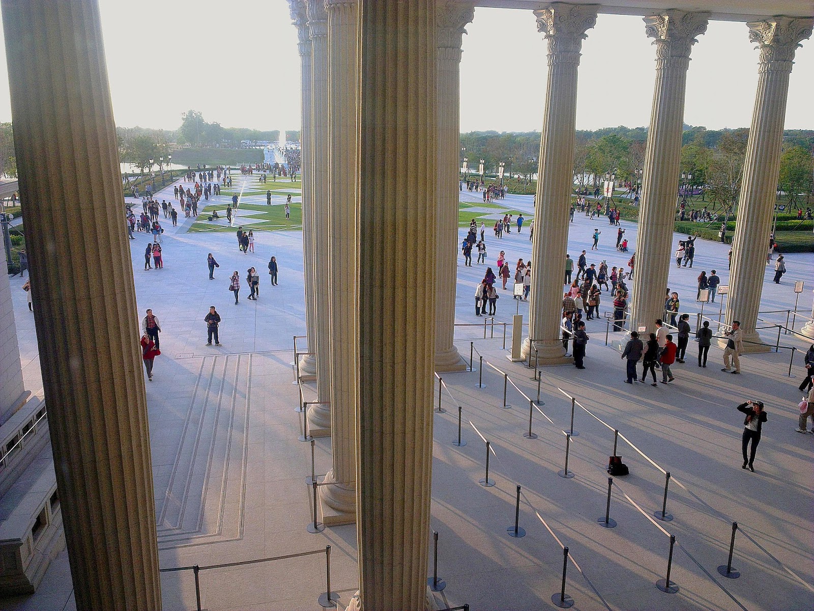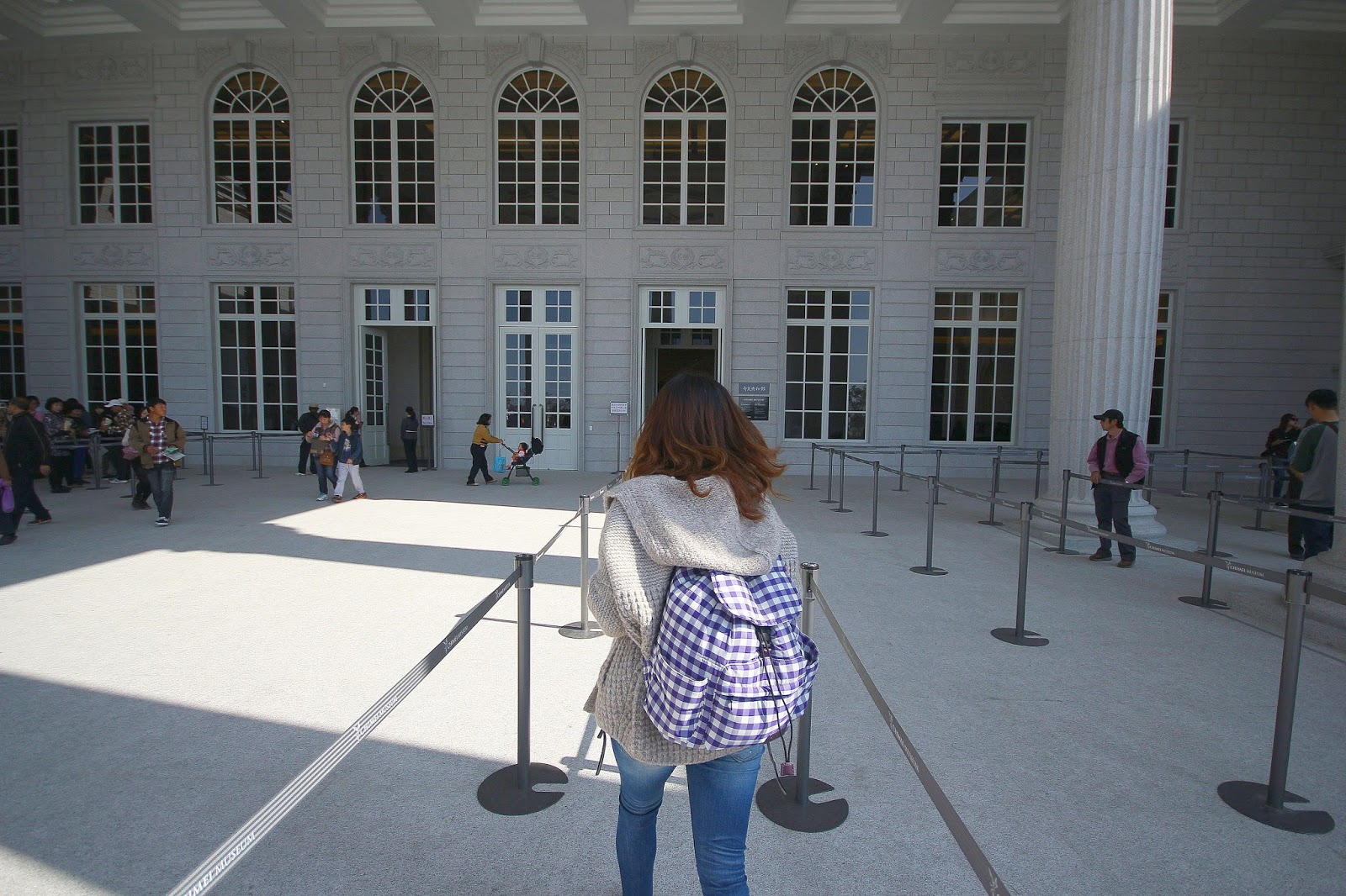 走過橋後就可以看到繆思廣場與後方的博物館主體了,白色建築與蔚藍晴空完美搭配讓人不自覺的停下腳步慢慢欣賞,