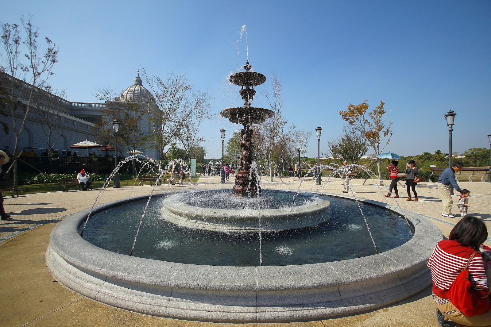 博物館北方有小天使許願池,水池中央的噴泉是由兩尊可愛的小天使合力抬起,也是法國知名雕塑家貝流茲的傑作,小天使許願池後方緊鄰戶外咖啡座,相信會是大家以後約會聊天的好去處,