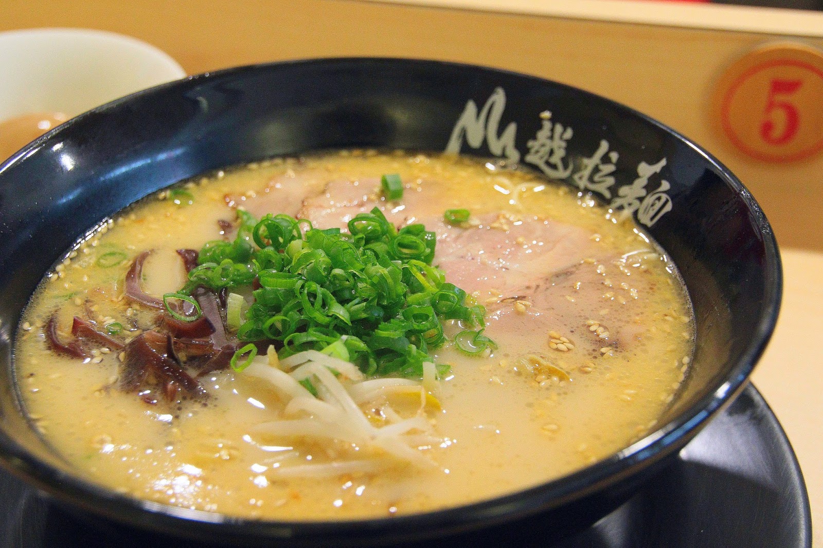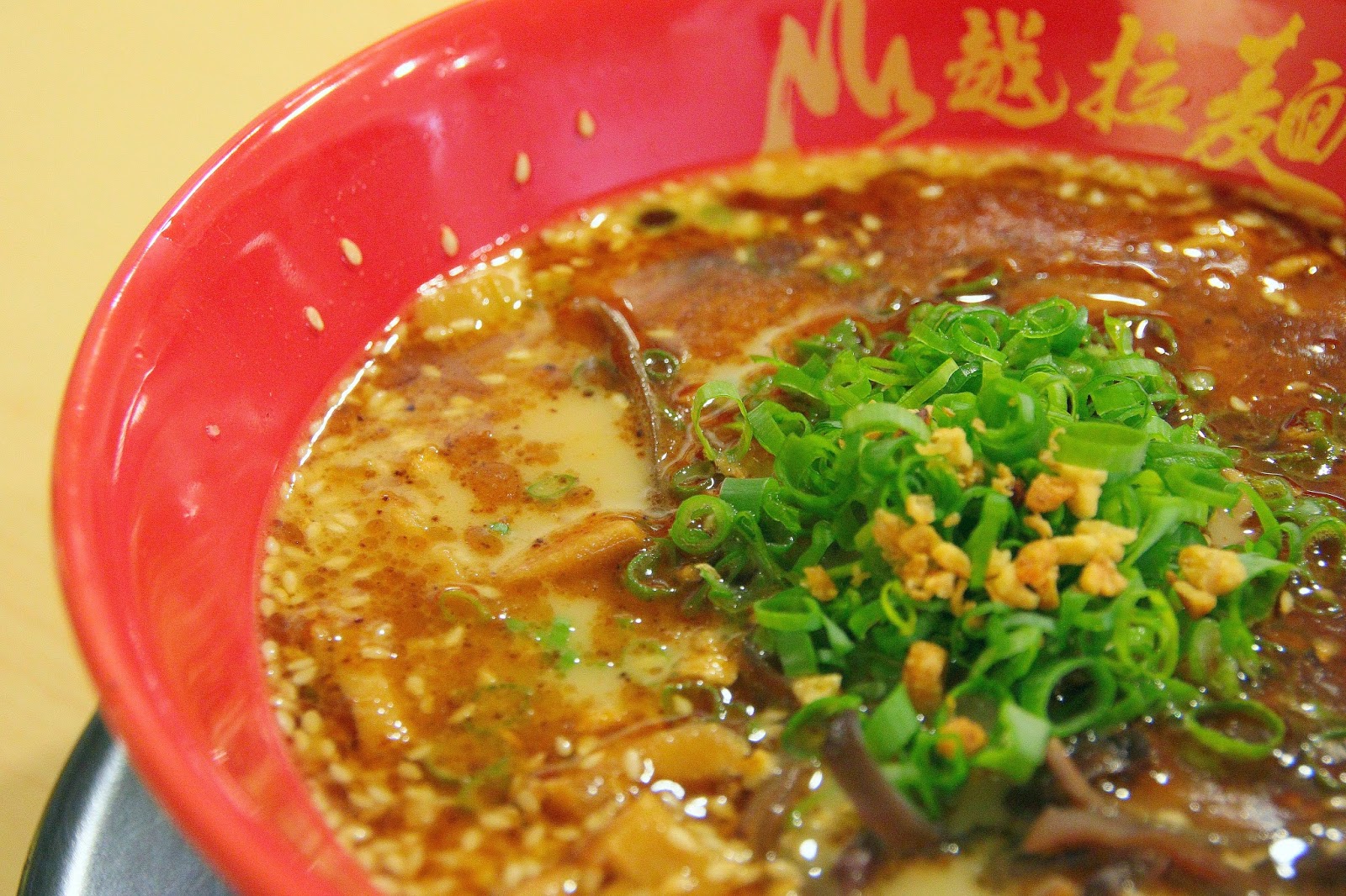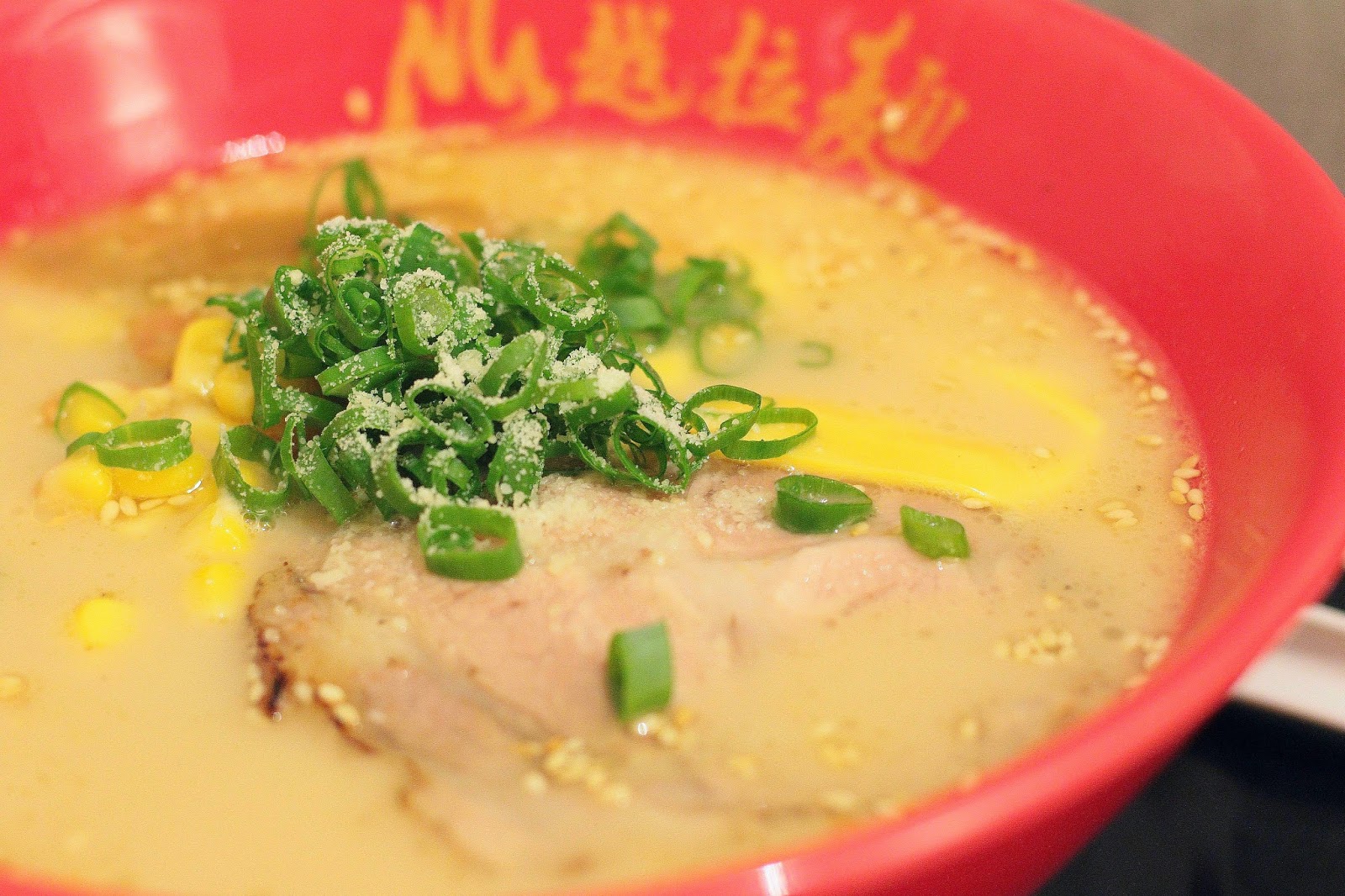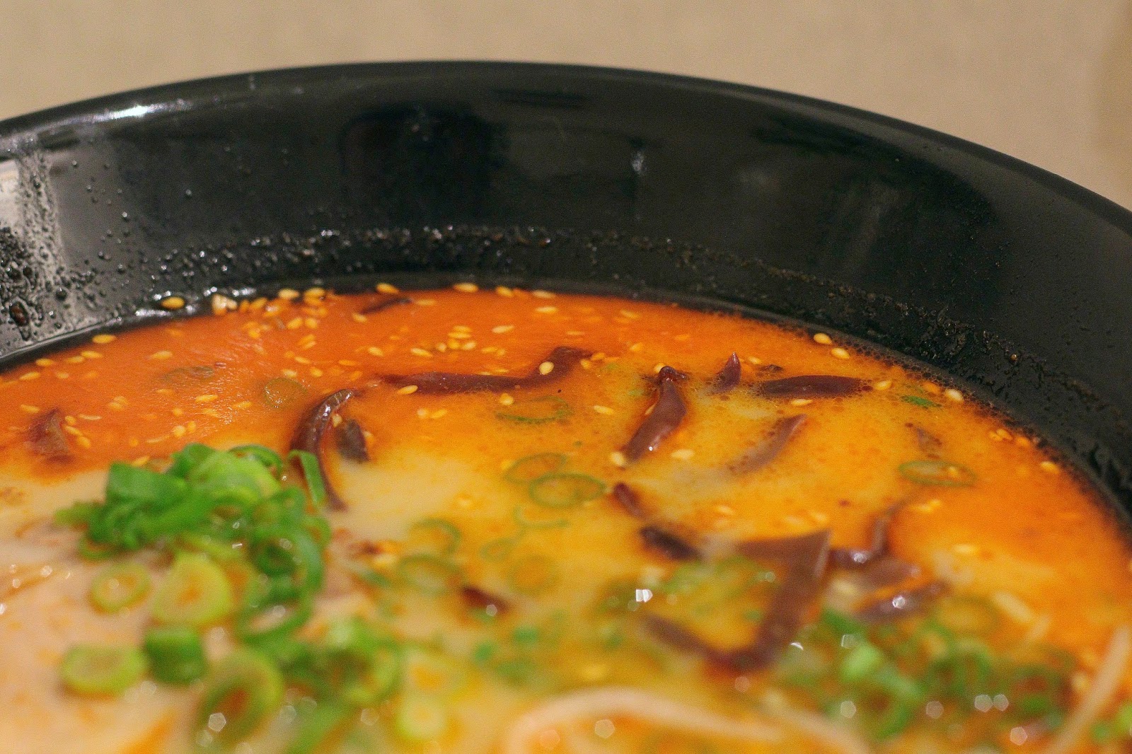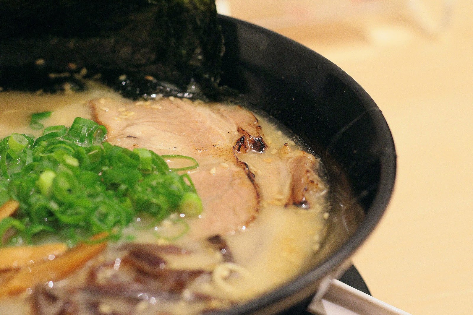 濃郁的豚骨白湯中帶著蒜香焦苦味,