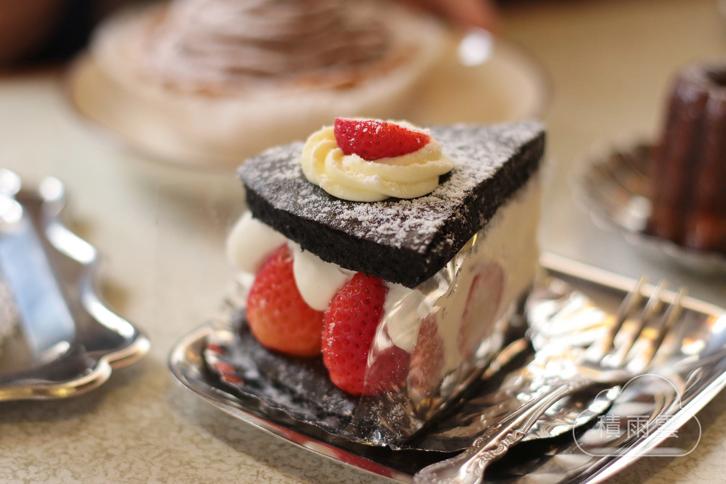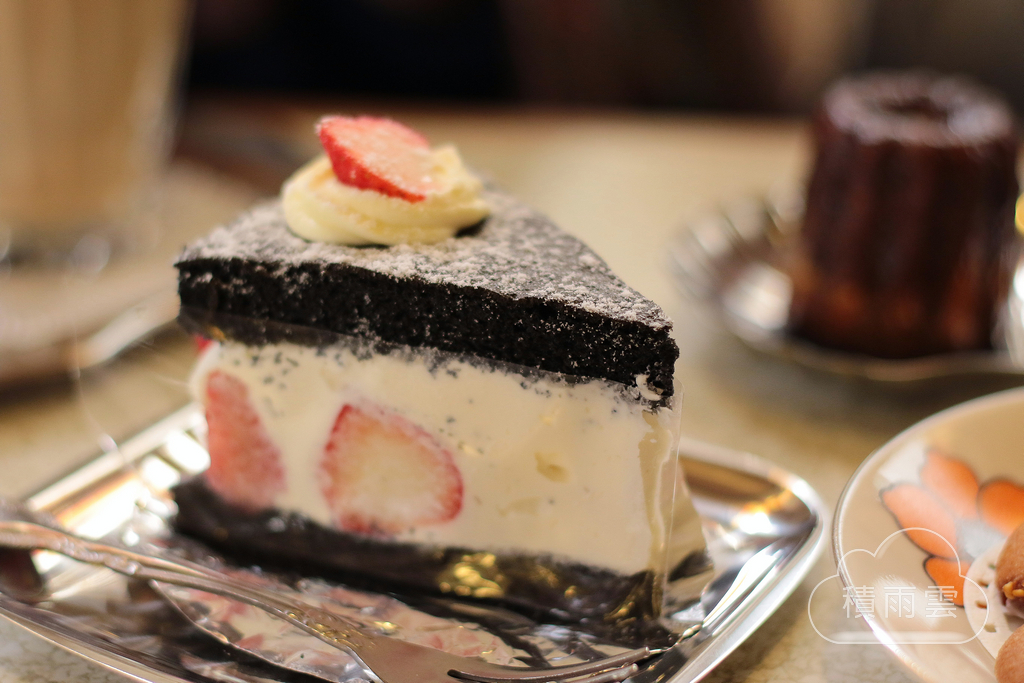 竹炭Mix可可的蛋糕內是輕柔不膩口的奶油與草莓,