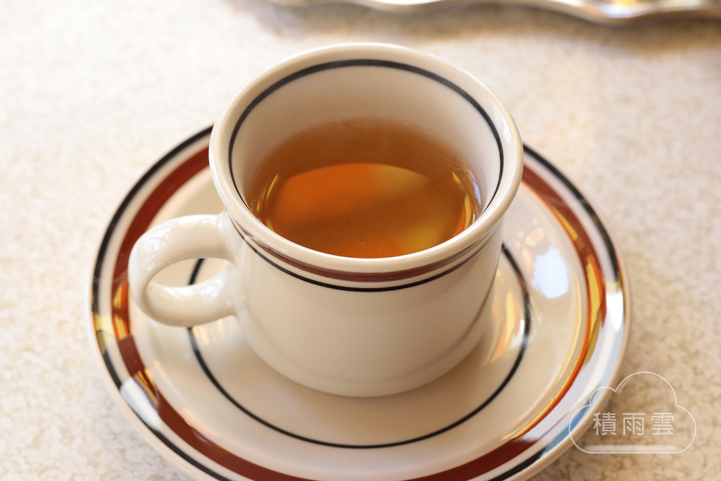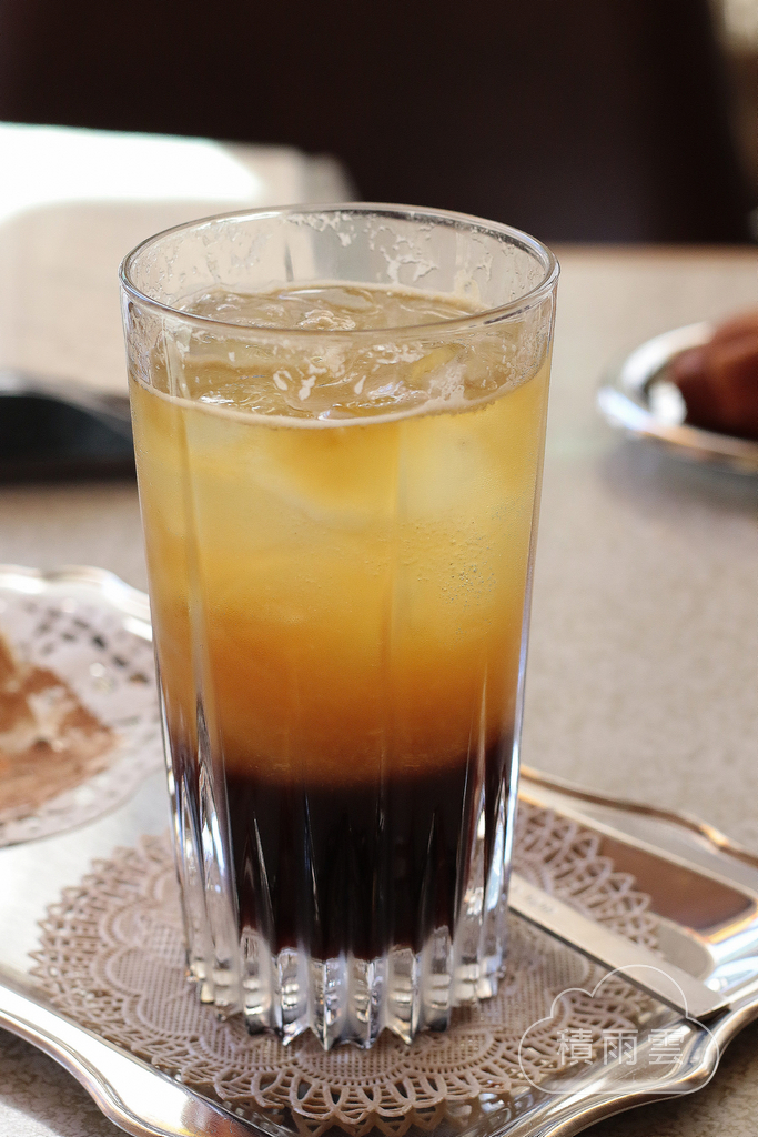 很特別的組合,底層是濃甜的咖啡,上面是清爽不甜的汽水,看似違和但攪拌後喝起來意外協調,入口咖啡濃醇一閃即過味蕾,正覺厚重時檸檬與氣泡感隨即解膩,真的是很特別口味與口感,