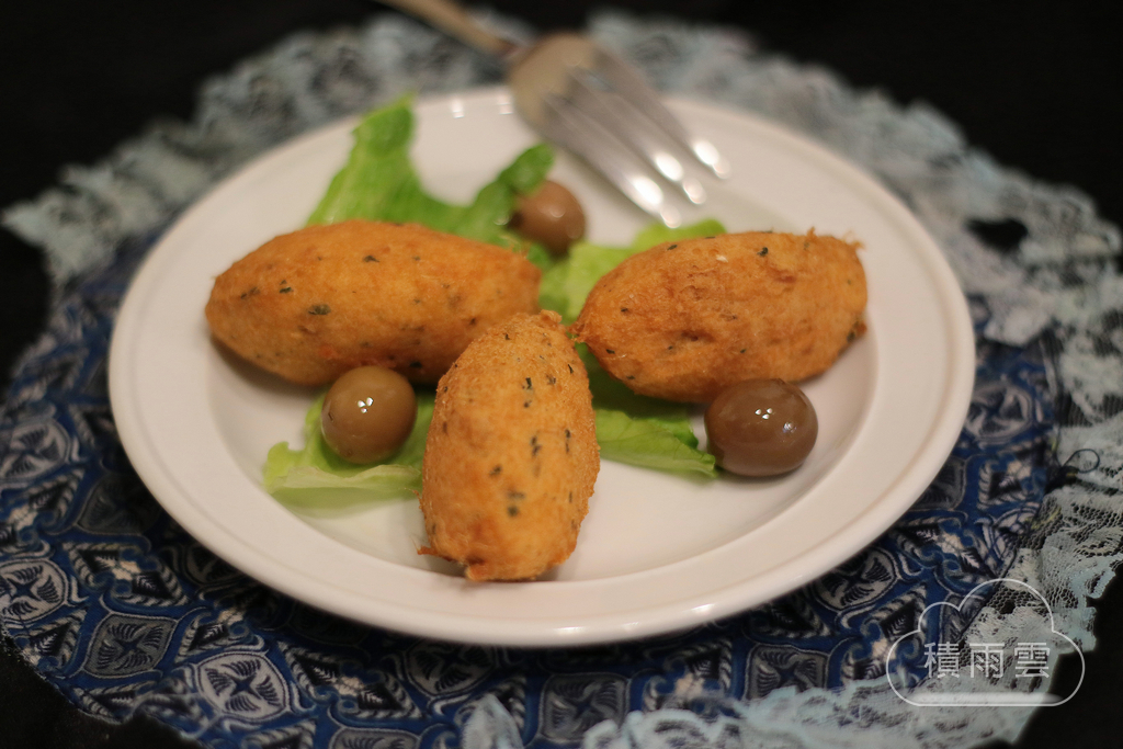 馬介休球口感外層酥香內層綿密,魚味不會很搶戲只有淡淡的襯著馬鈴薯的香味,