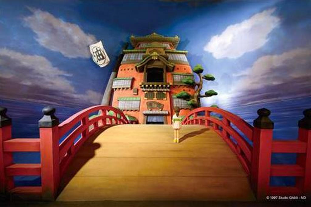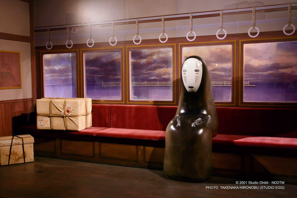 趁這次特展前找了些資料順便幫大家複習一下這次展覽裡幾個已公佈的場景,最先介紹當然是經典中的經典「龍貓」,看到這公車站牌是不是馬上回想起當初第一次看到這幕的感動呢,這是某次小月與小米在公車站牌等著接爸爸,小米還因為太睏而睡著了,這時小月從傘下看見了龍貓可愛的腳爪,還借了把傘給只放片荷葉在頭上遮雨的大龍貓,之後大龍貓就呼叫貓巴士回塚森,根據官方公佈的資訊這次好像還有機會坐進真的貓巴士中歐!