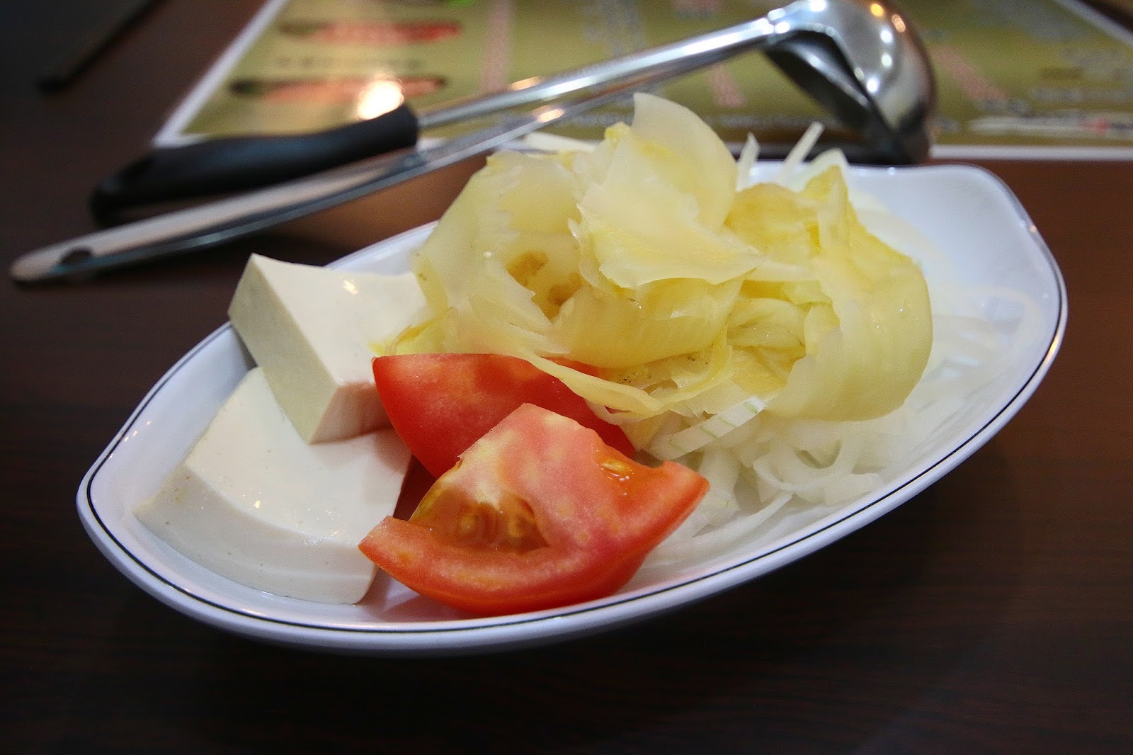 起鍋附豆腐、牛番茄、酸菜、洋蔥,