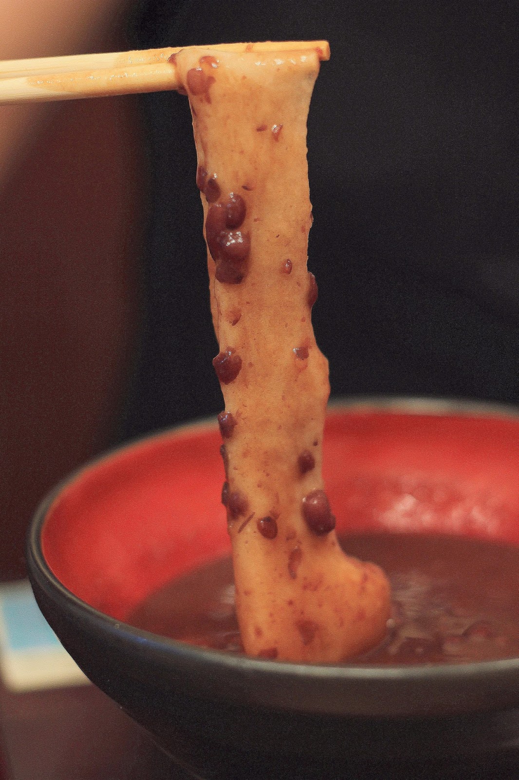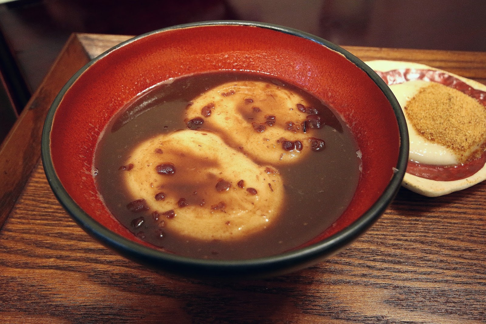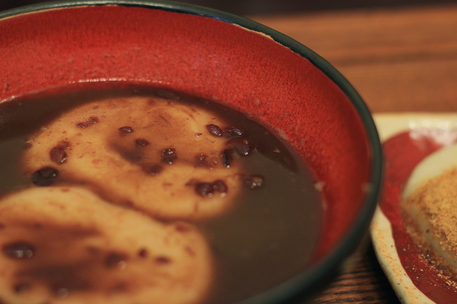 泡在湯裡的麻糬意外軟Q,沾附滿滿的紅豆湯一起吃非常對味,讓人想起日本過年吃暖呼呼紅豆湯麻糬的情景,