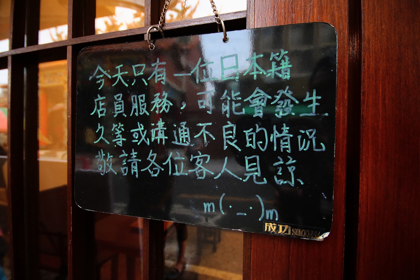進店消費前先提醒大家一下如果看到這吊牌表示店內只有日籍老闆娘一位,所以出餐點會比較慢建議急性子或趕時間的人可以考慮附近其他店家,