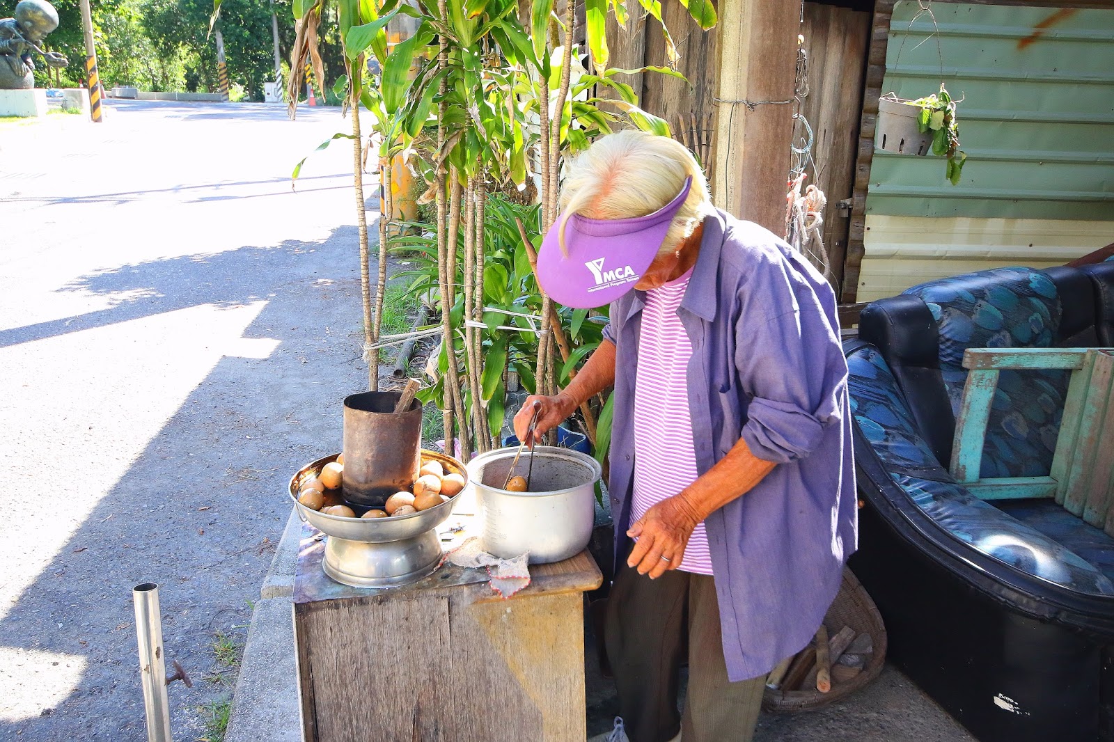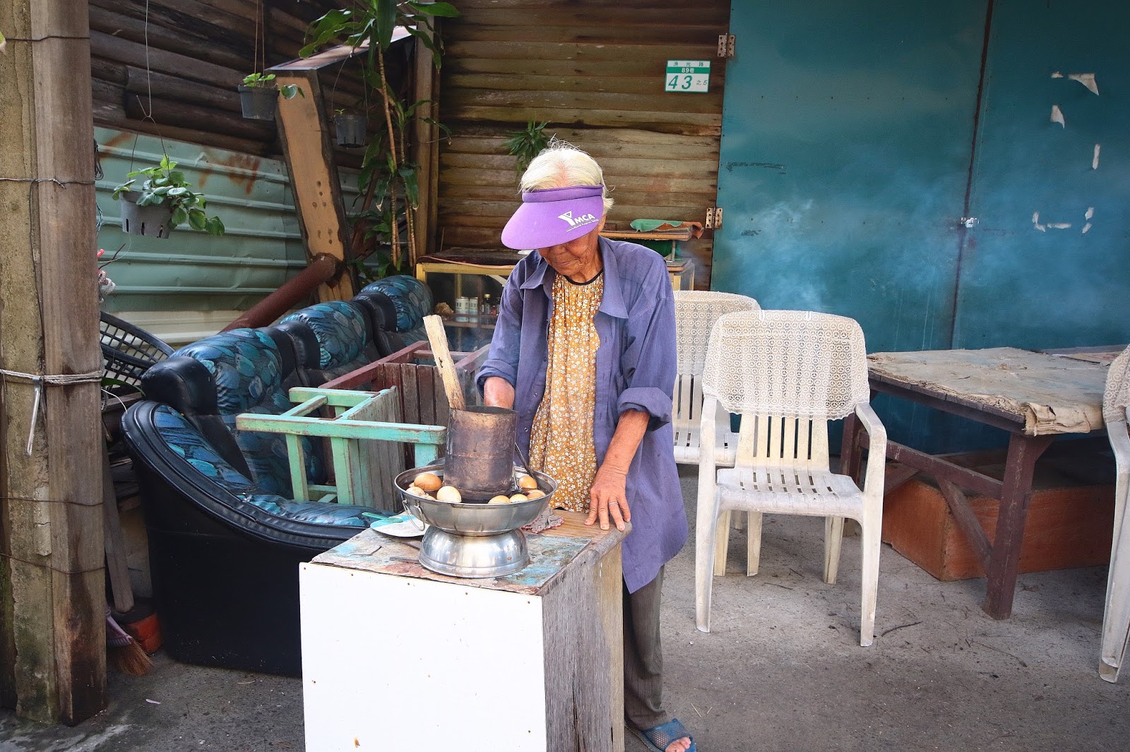 一走近就聽見婆婆開朗的招呼,這裡只賣2樣商品,一是茶葉蛋另一樣是青草茶,