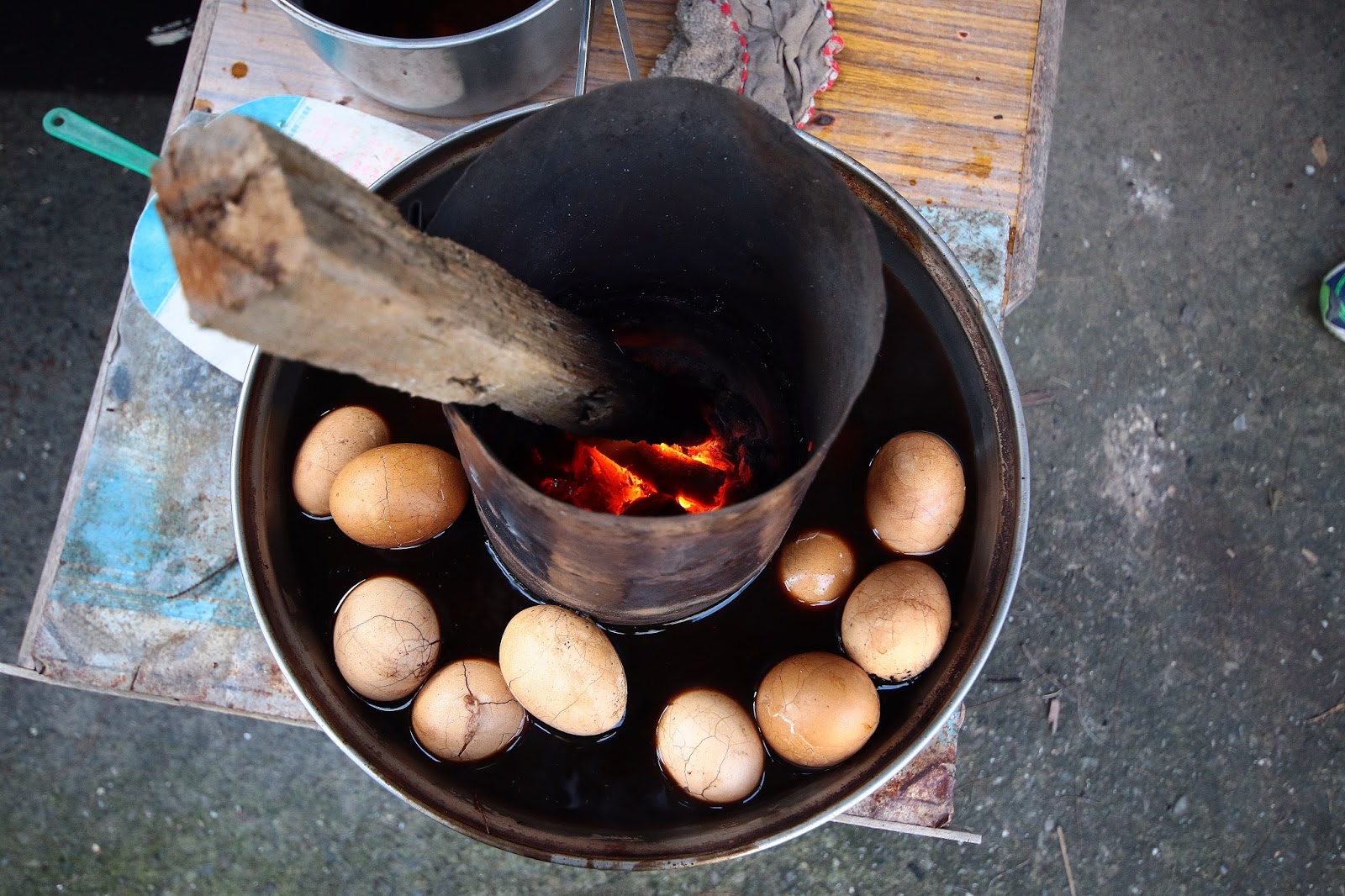 保溫方式是用婆婆自己撿來曬乾的木柴當熱源,