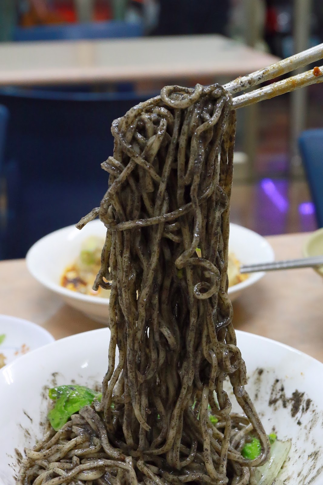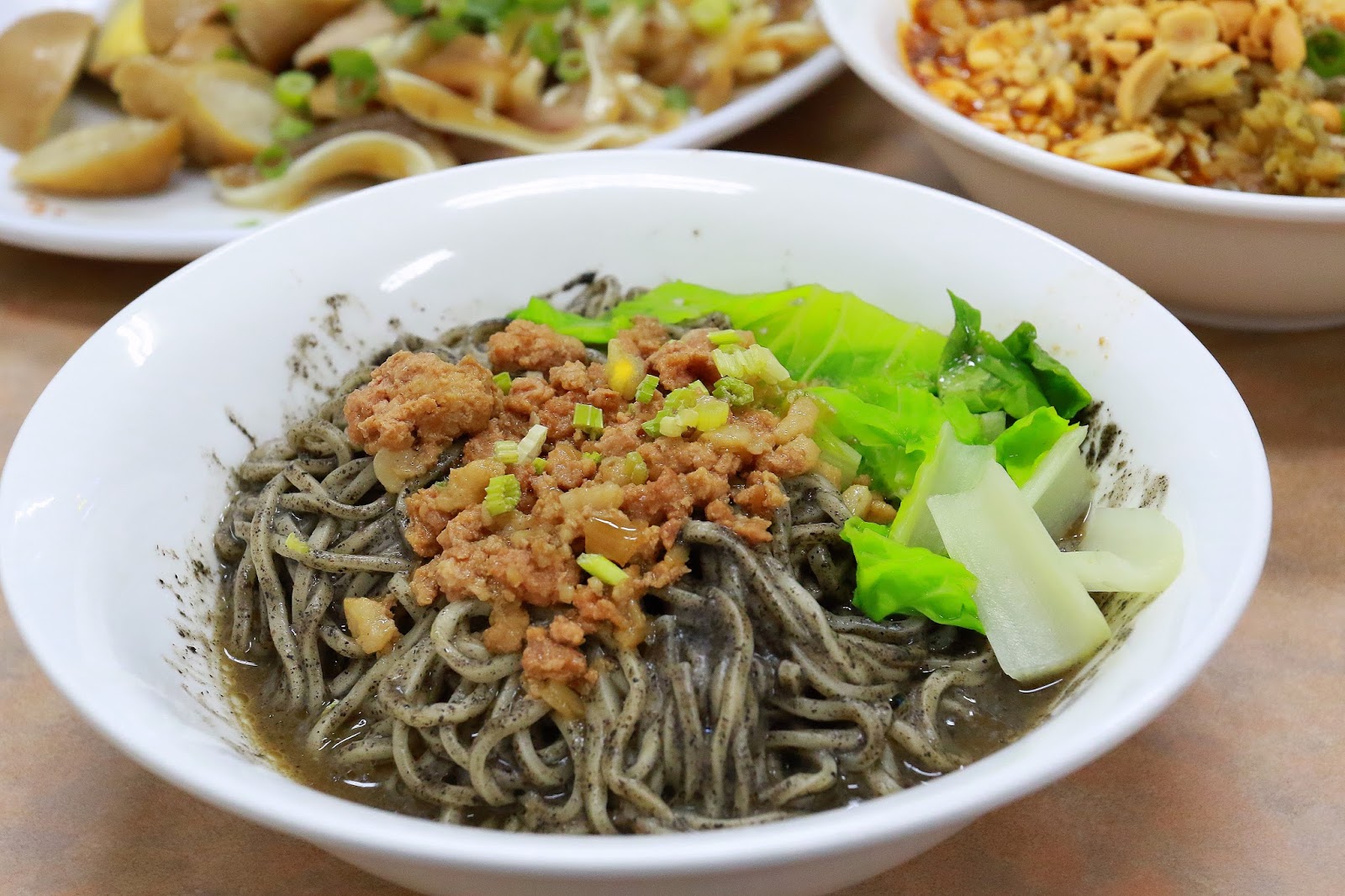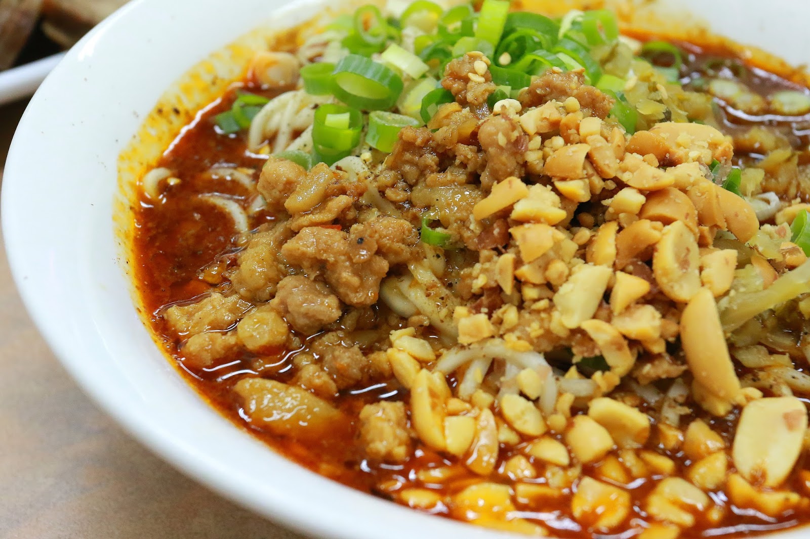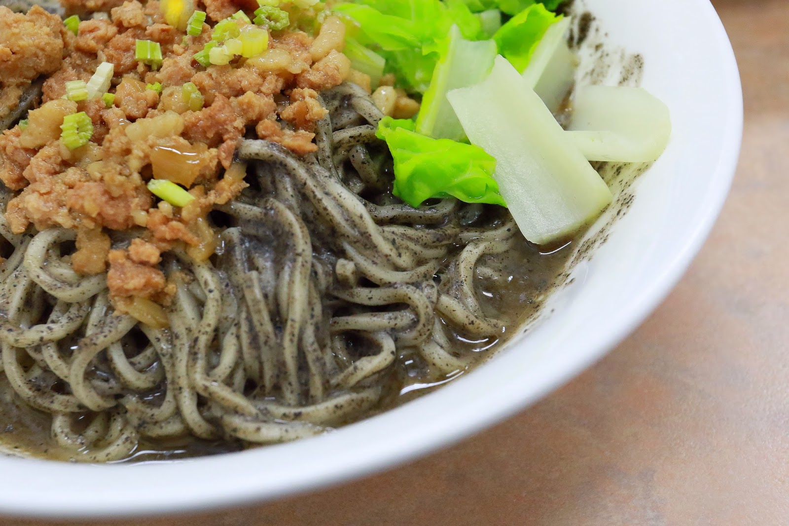這碗是乾麵而且是真的很乾爽的那種乾,配料有花生、蔥花、酸菜、肉燥,一樣均勻拌開後就可以開動了,