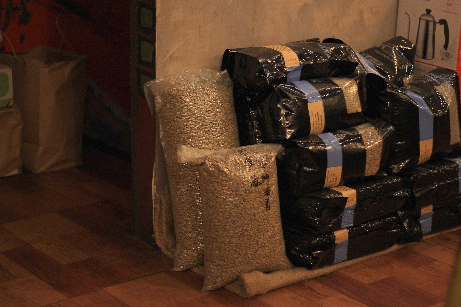 角落一處還堆著生豆,