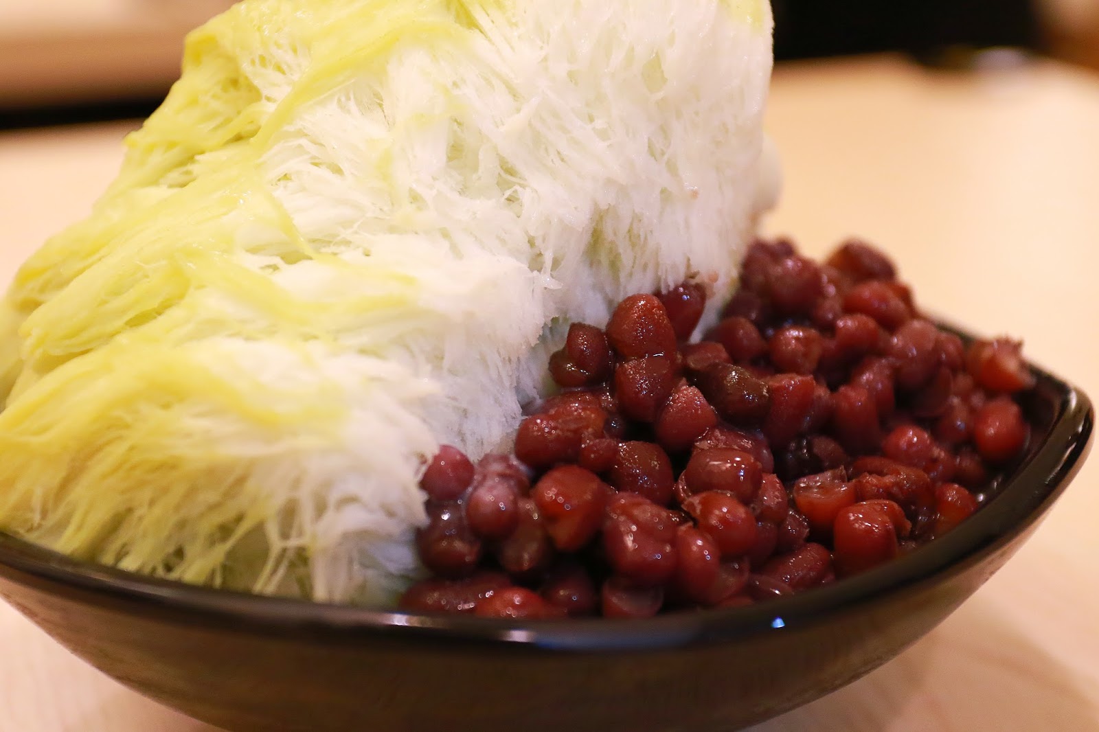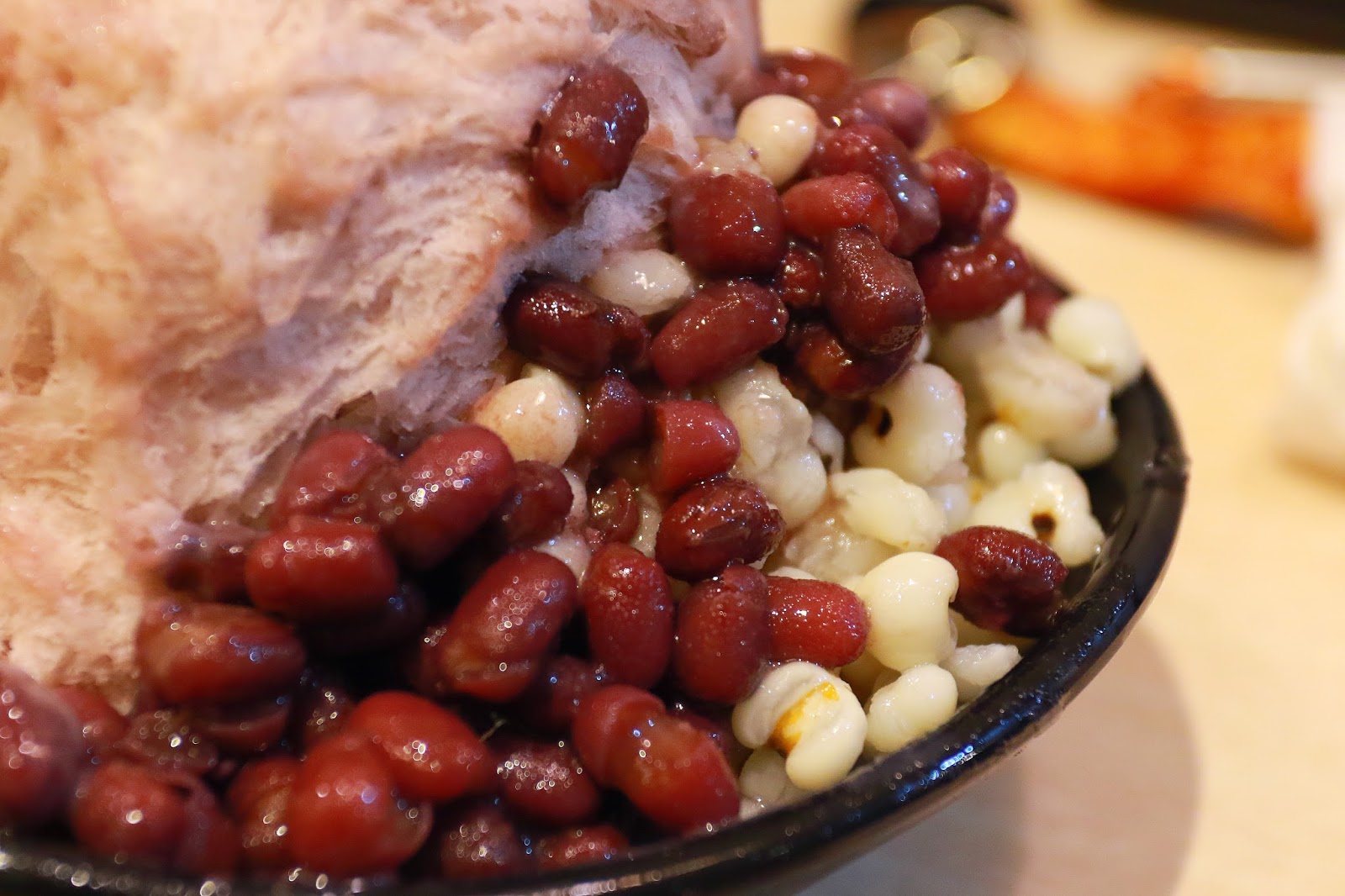 紅豆口味的雪花冰搭配紅豆跟薏仁,