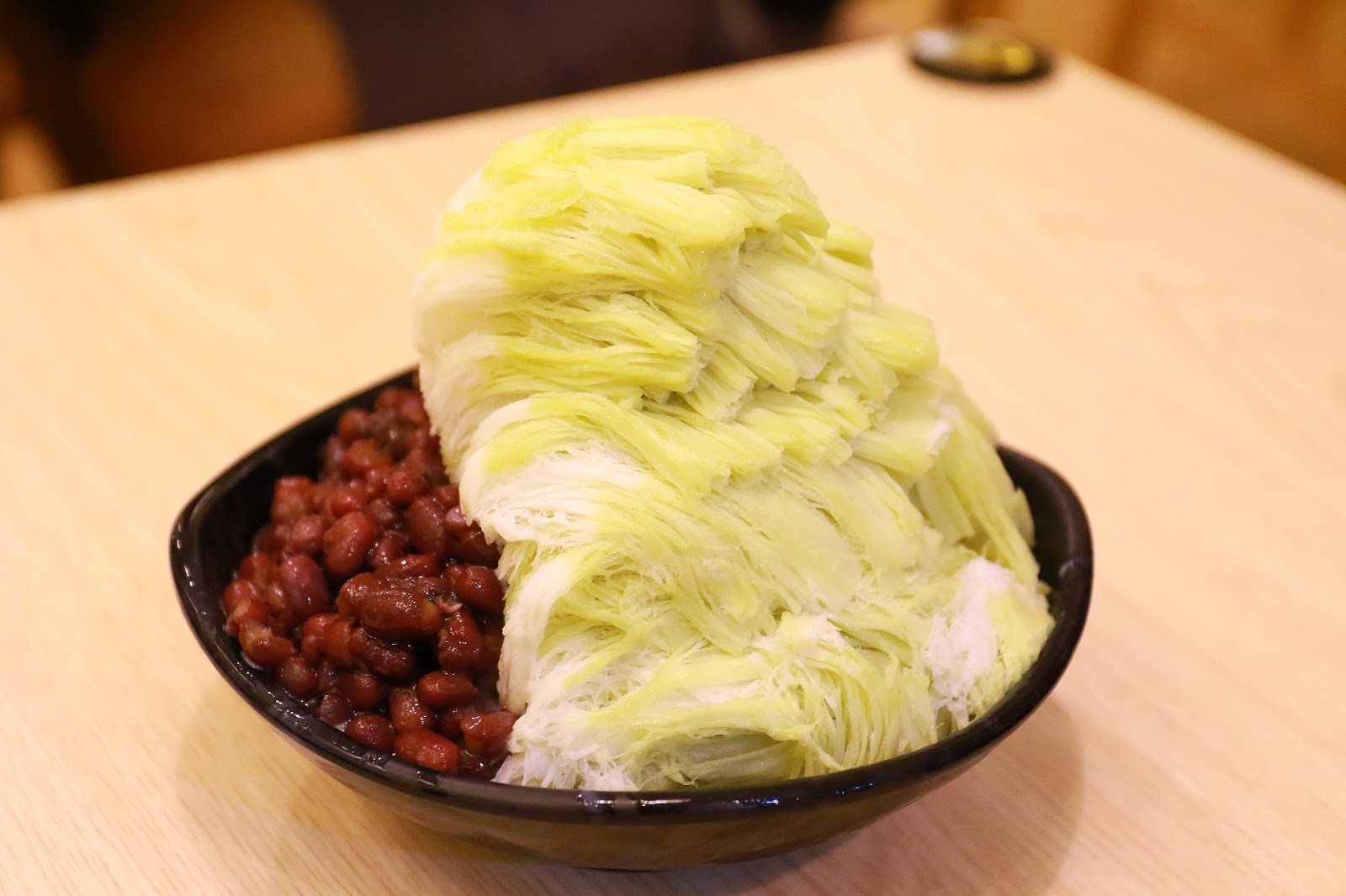 綠色的抹茶淡淡的白色是牛奶搭配紅豆,