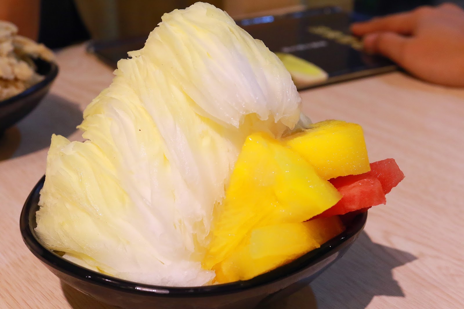口感吃起來比一般市售的雪花冰更接近雪花,入口一下就輕快的融化了,