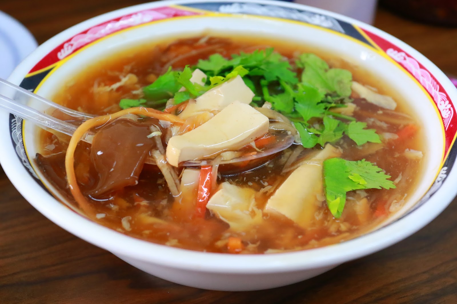 有豆腐、黑木耳、紅蘿蔔、筍絲、蛋花,配料很豐富,