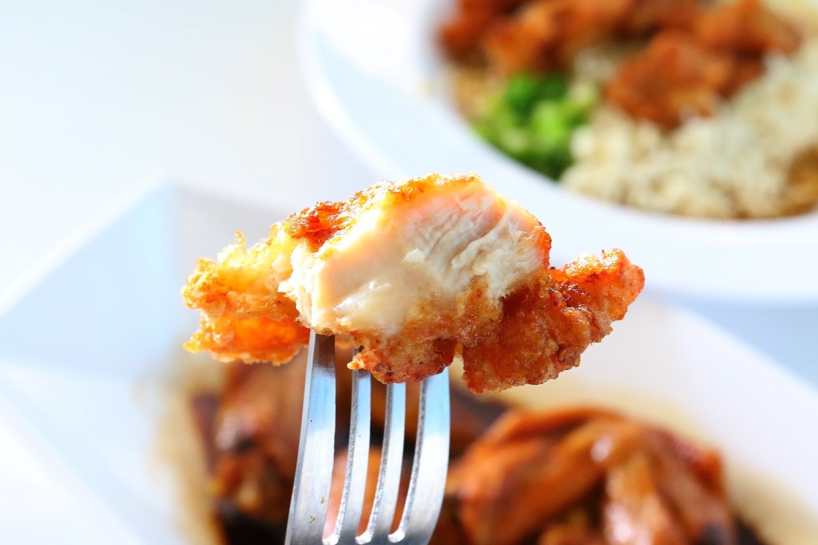 雞腿肉外面裹的粉漿是有調味的,裡面雞肉熟度剛好還保有肉汁,