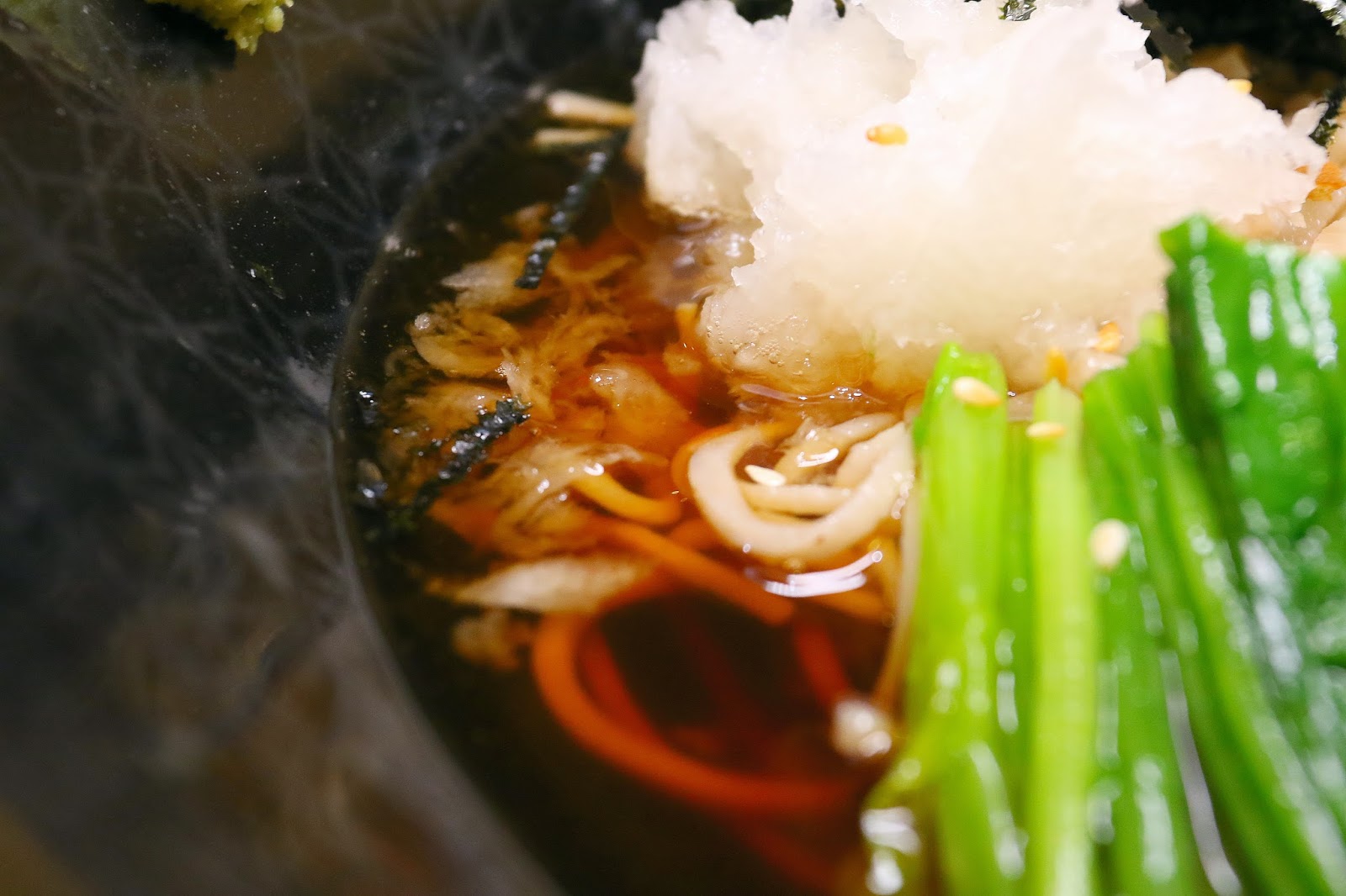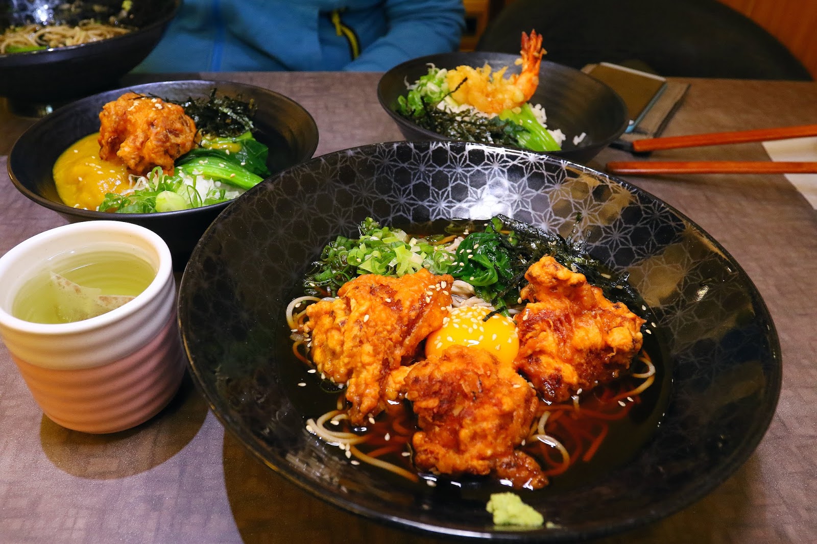 福井縣越前市的地方吃法,日式柴魚醬油風的醬汁其實不少,上桌時蕎麥麵幾乎完全浸在醬汁裡,醬汁可換素的(香菇醬油風味醬汁)