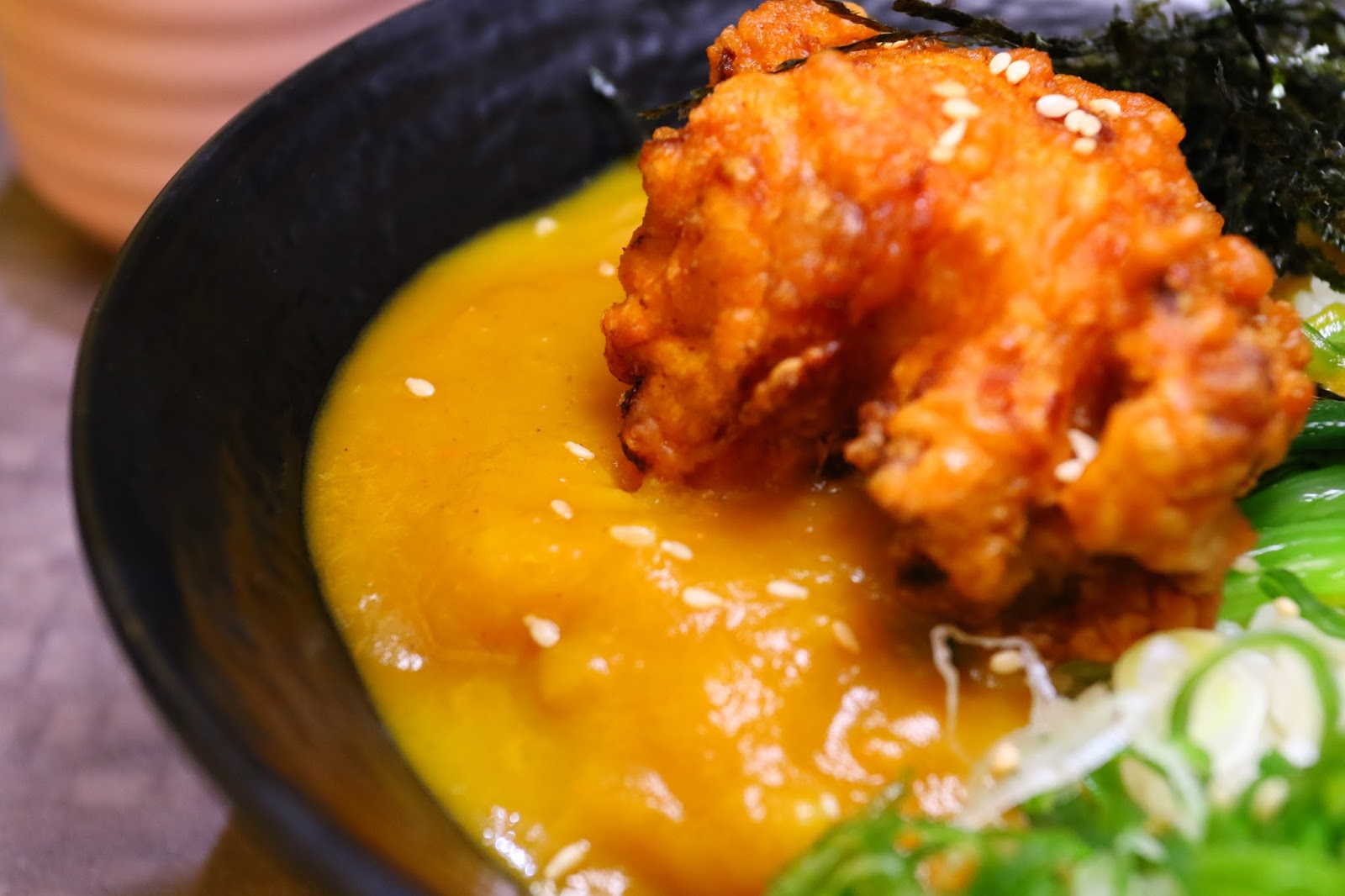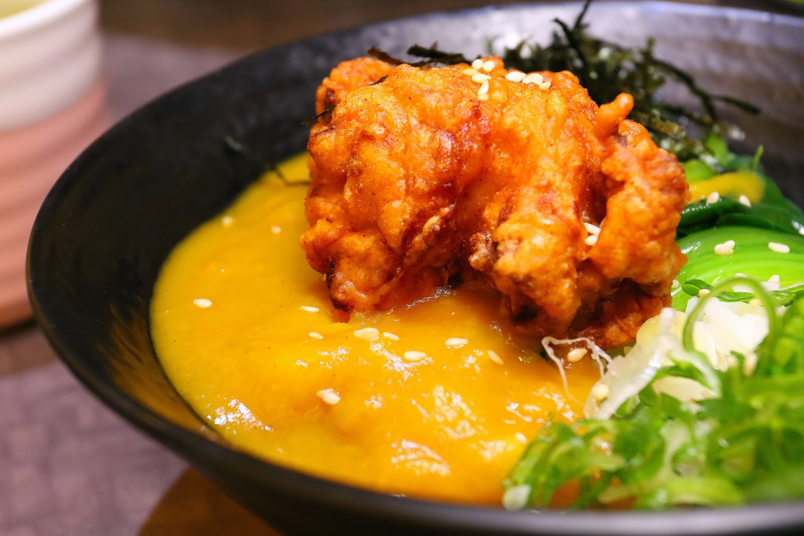 炸雞沾裹上咖哩醬兩者不會互搶風味,咖哩的甜與香氣襯出雞肉本身的鮮味,