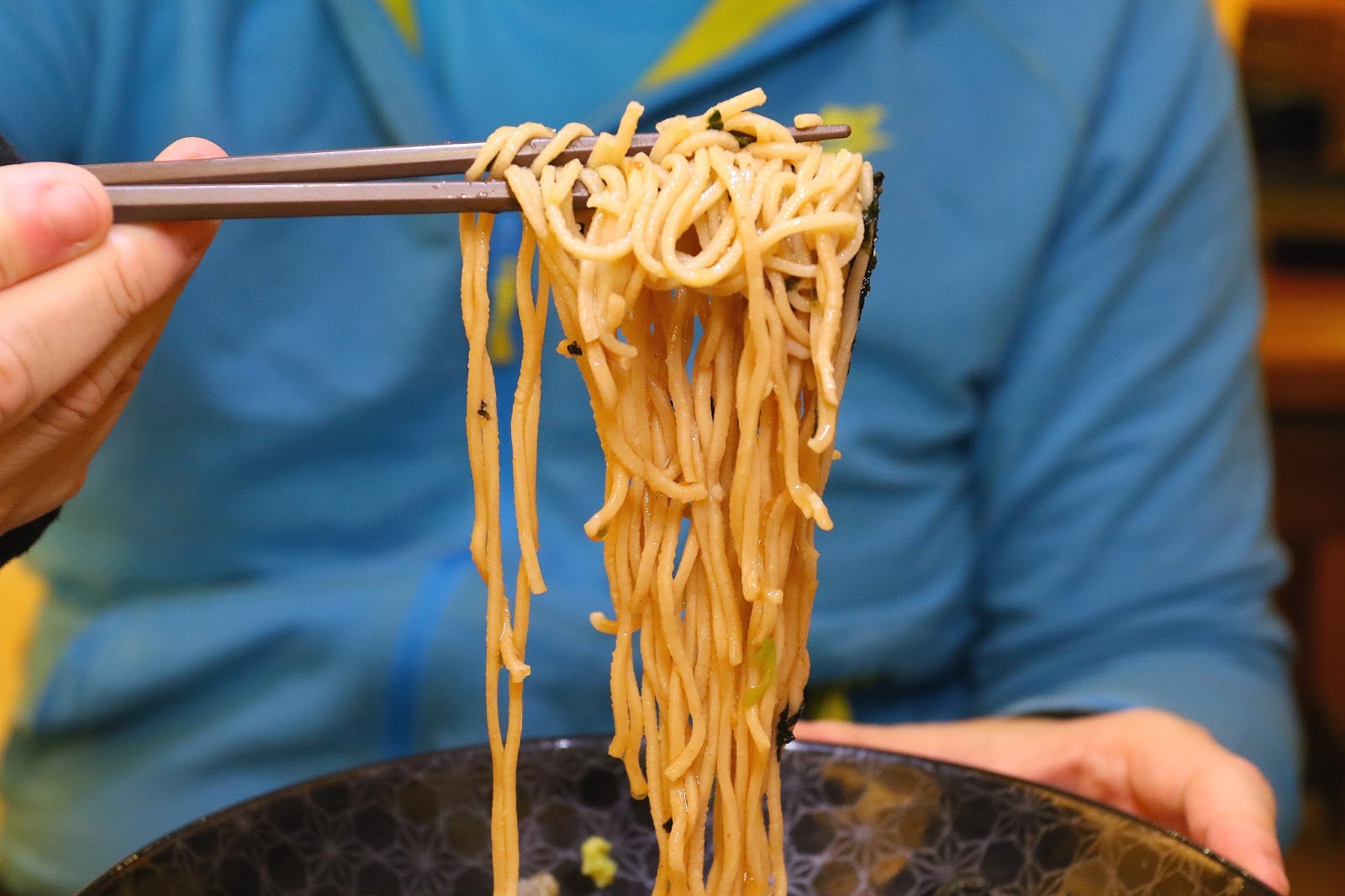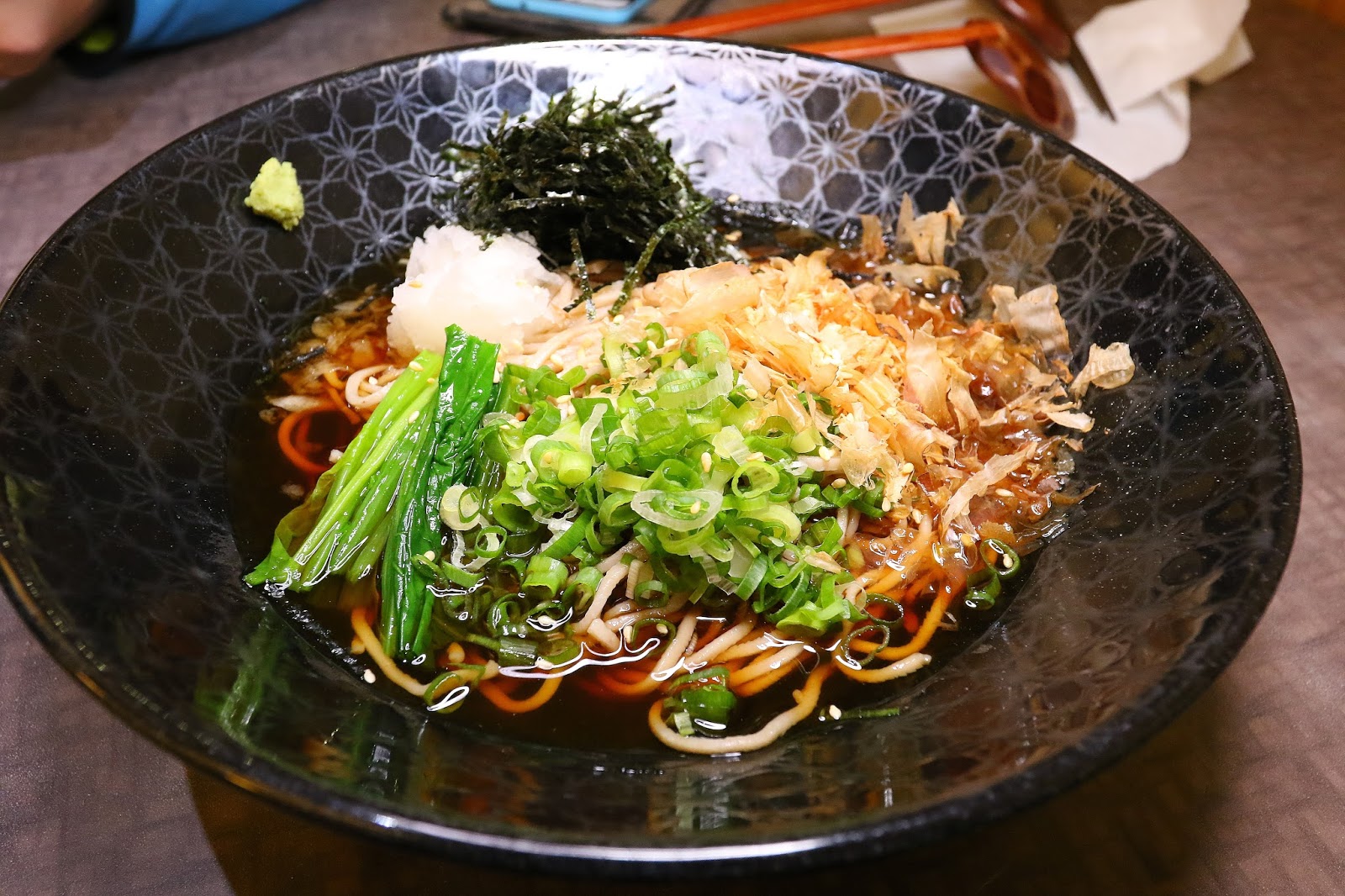 配料少了柴魚片再加上把生蛋黃拌開醬汁風味更順口,蛋黃的滑潤感沾附在麵上~咻的一聲把麵吸入好過癮呀!