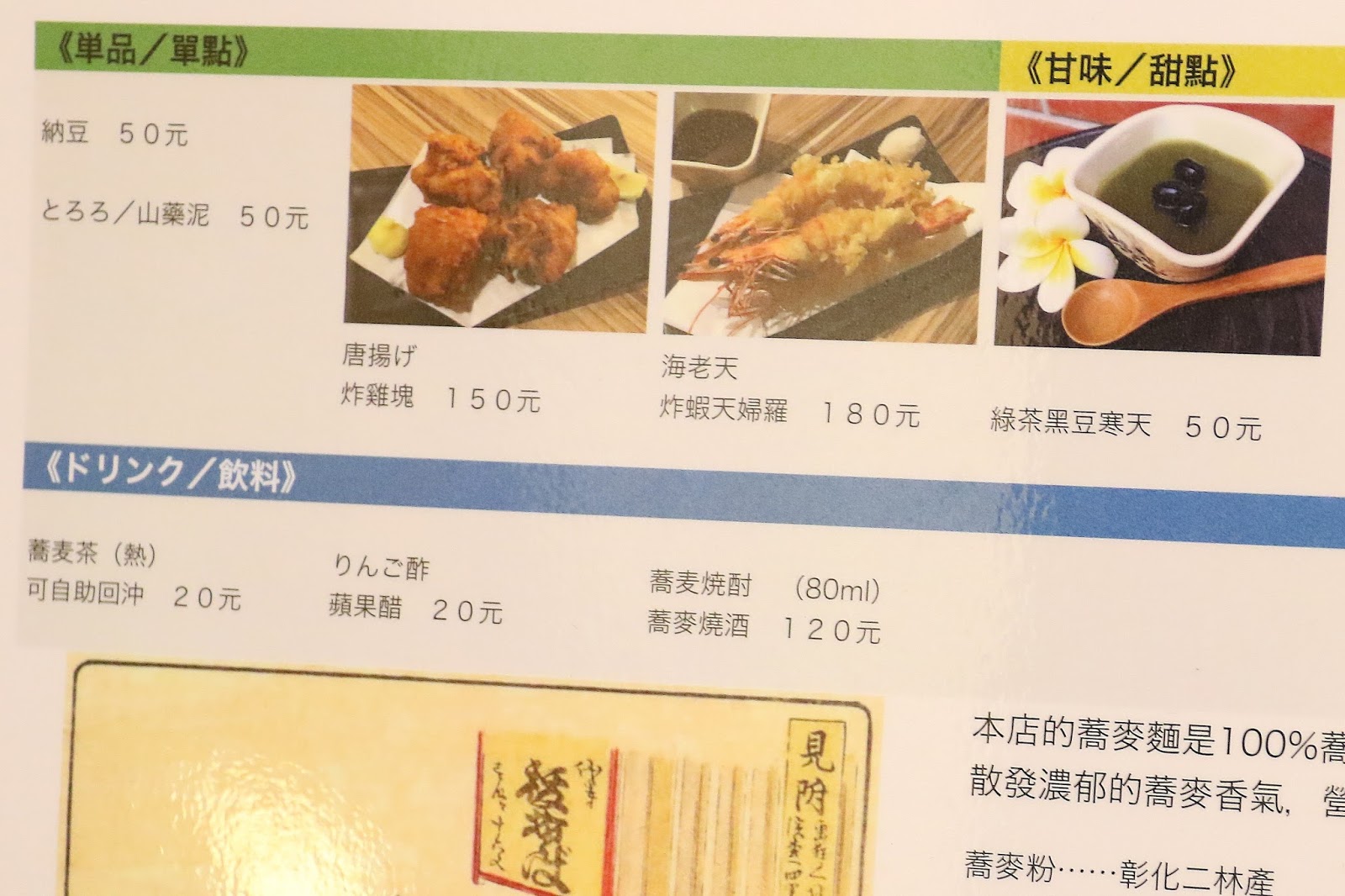 任選蕎麥麵+$120,內容有蕎麥麵、一半份量的丼飯、飲料、甜點,
