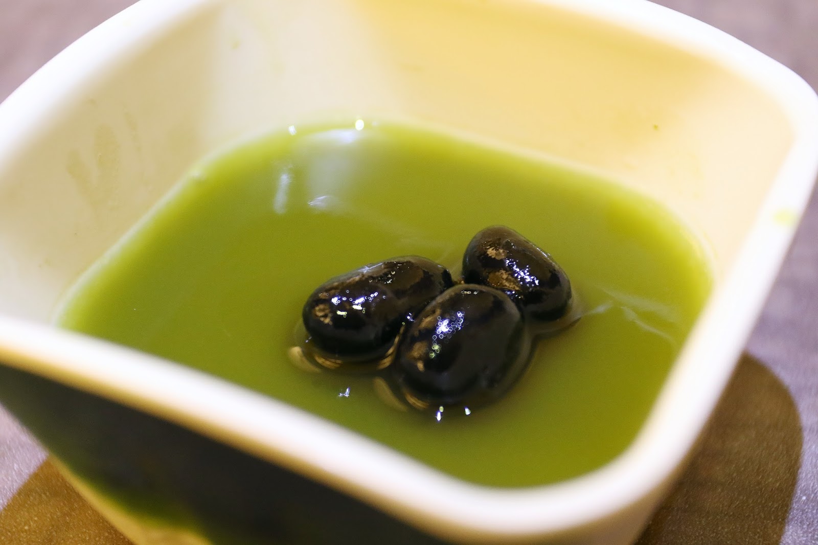 Q彈扎實的綠茶口味寒天凍搭配帶點甜味的黑豆,
