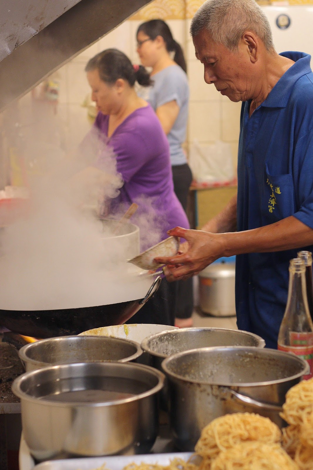 爆香料下鍋後老闆熟練地掌控火蘊,