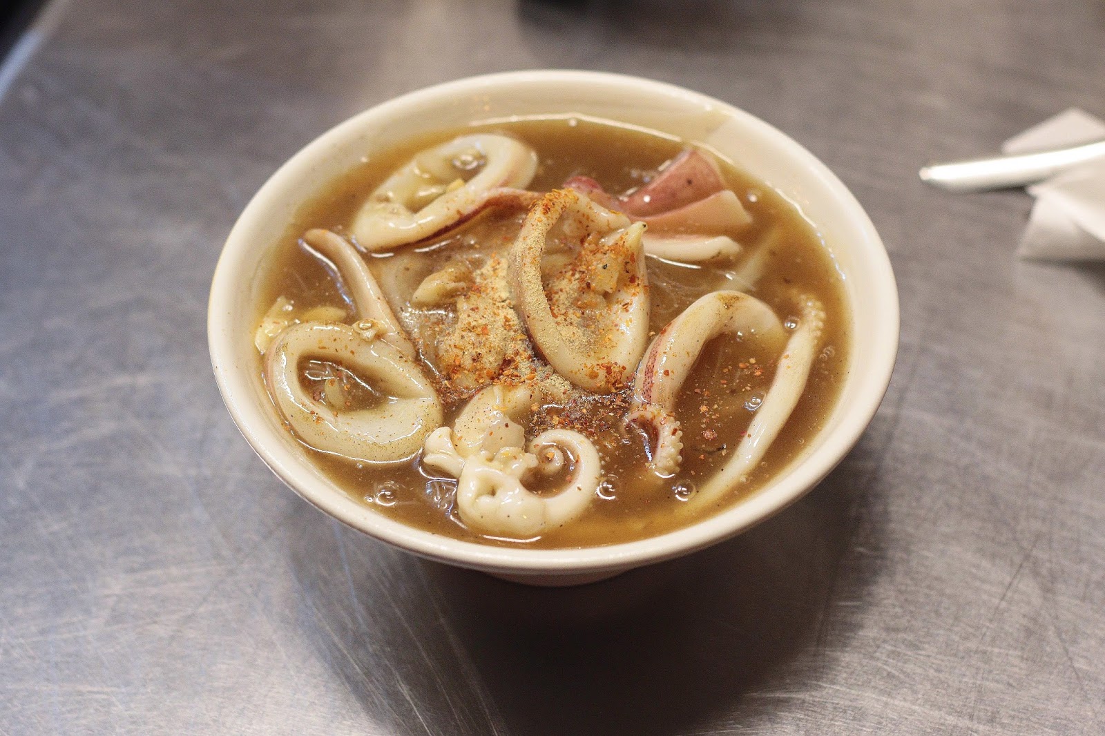 少了意麵胡椒粉的提味效果更為明顯,快炒熟成的脆彈肉質讓人停不了口,
