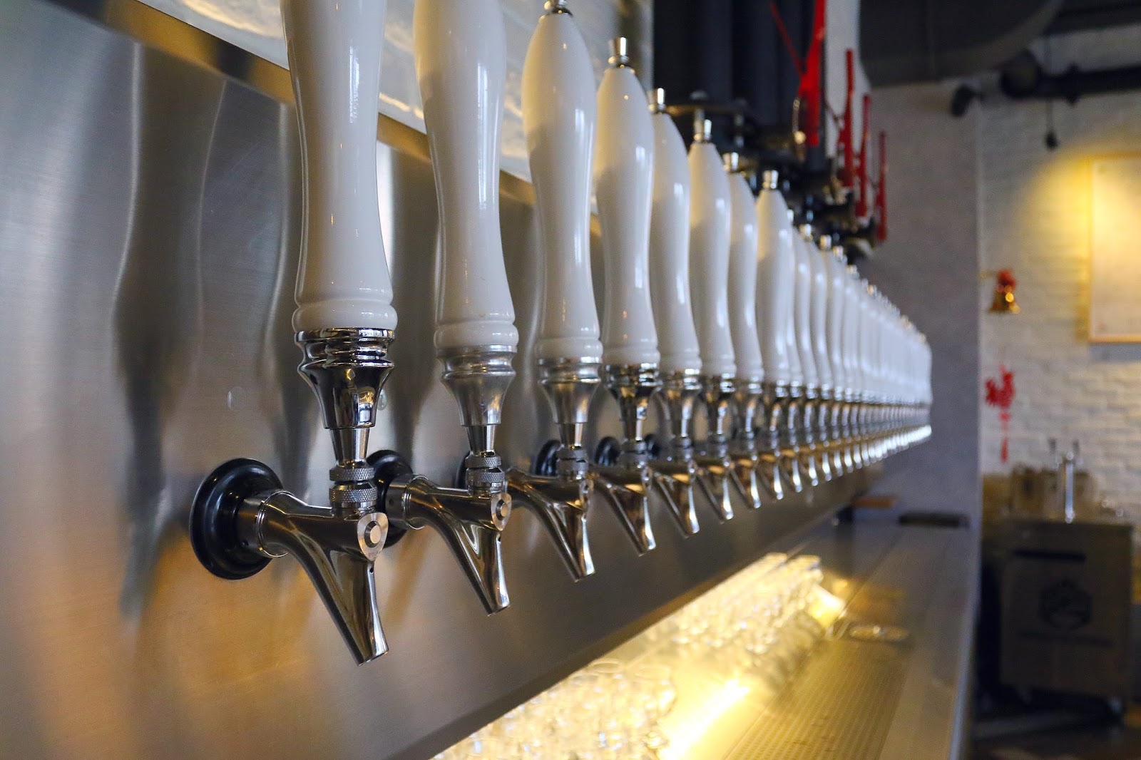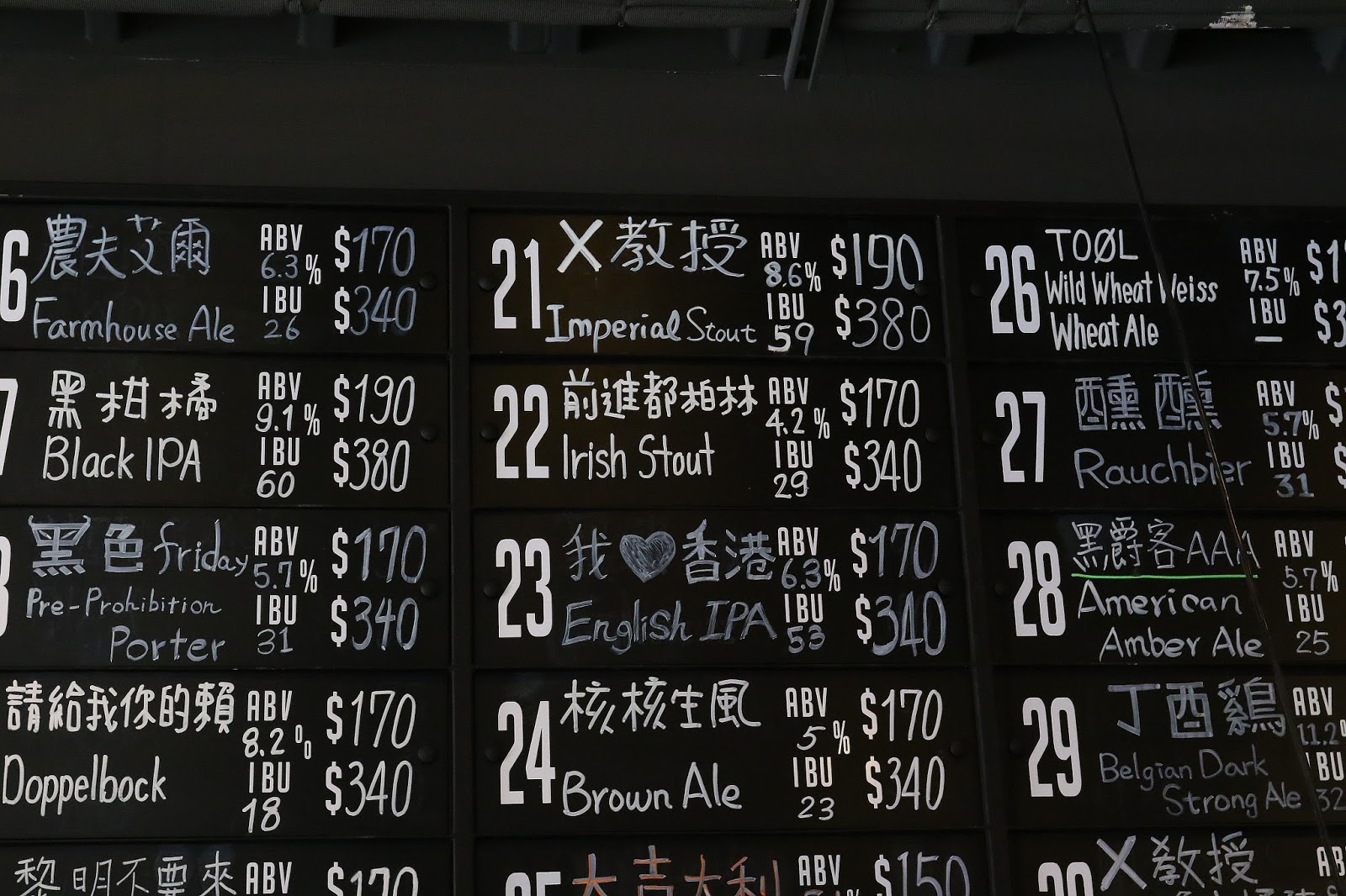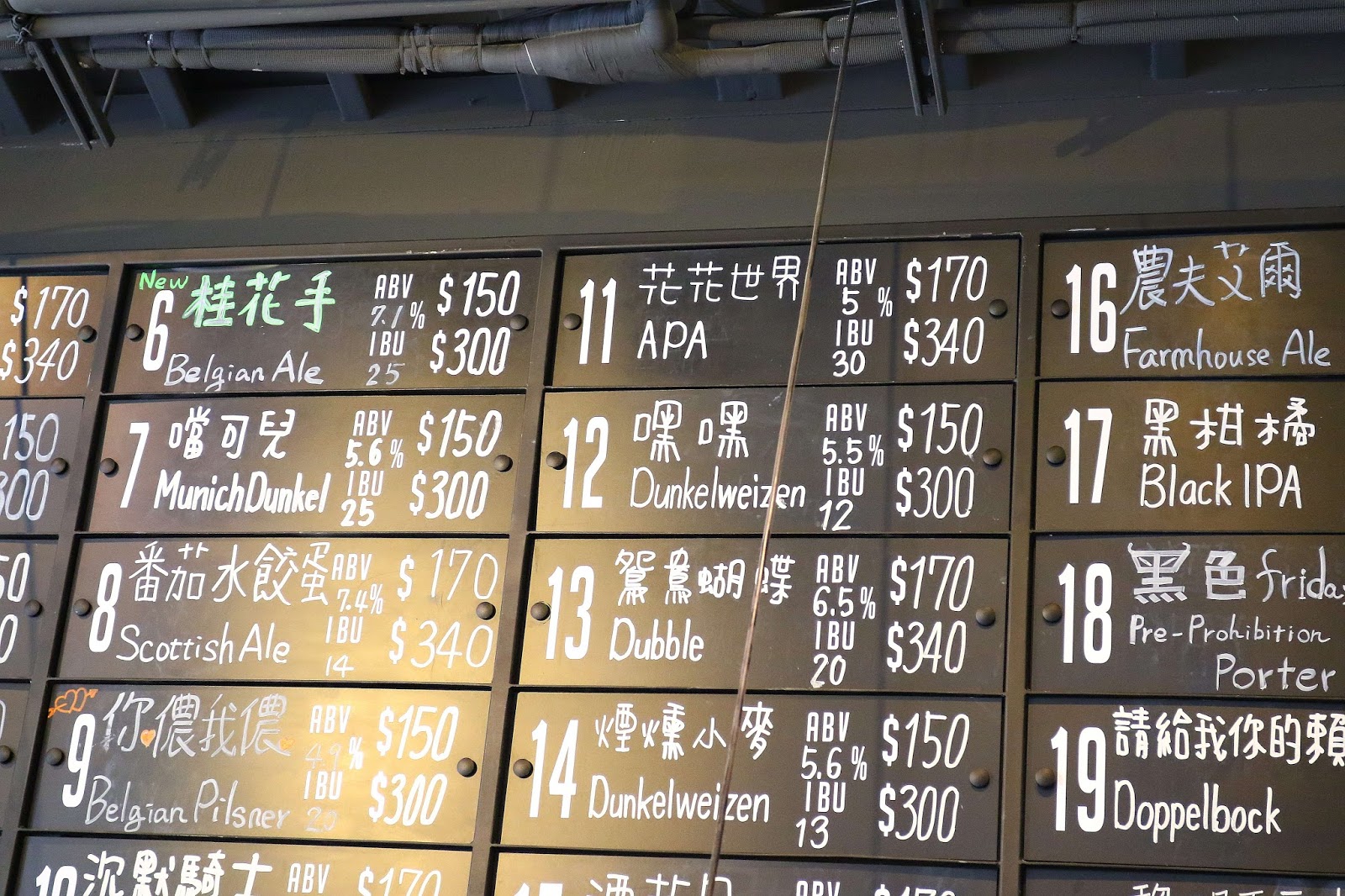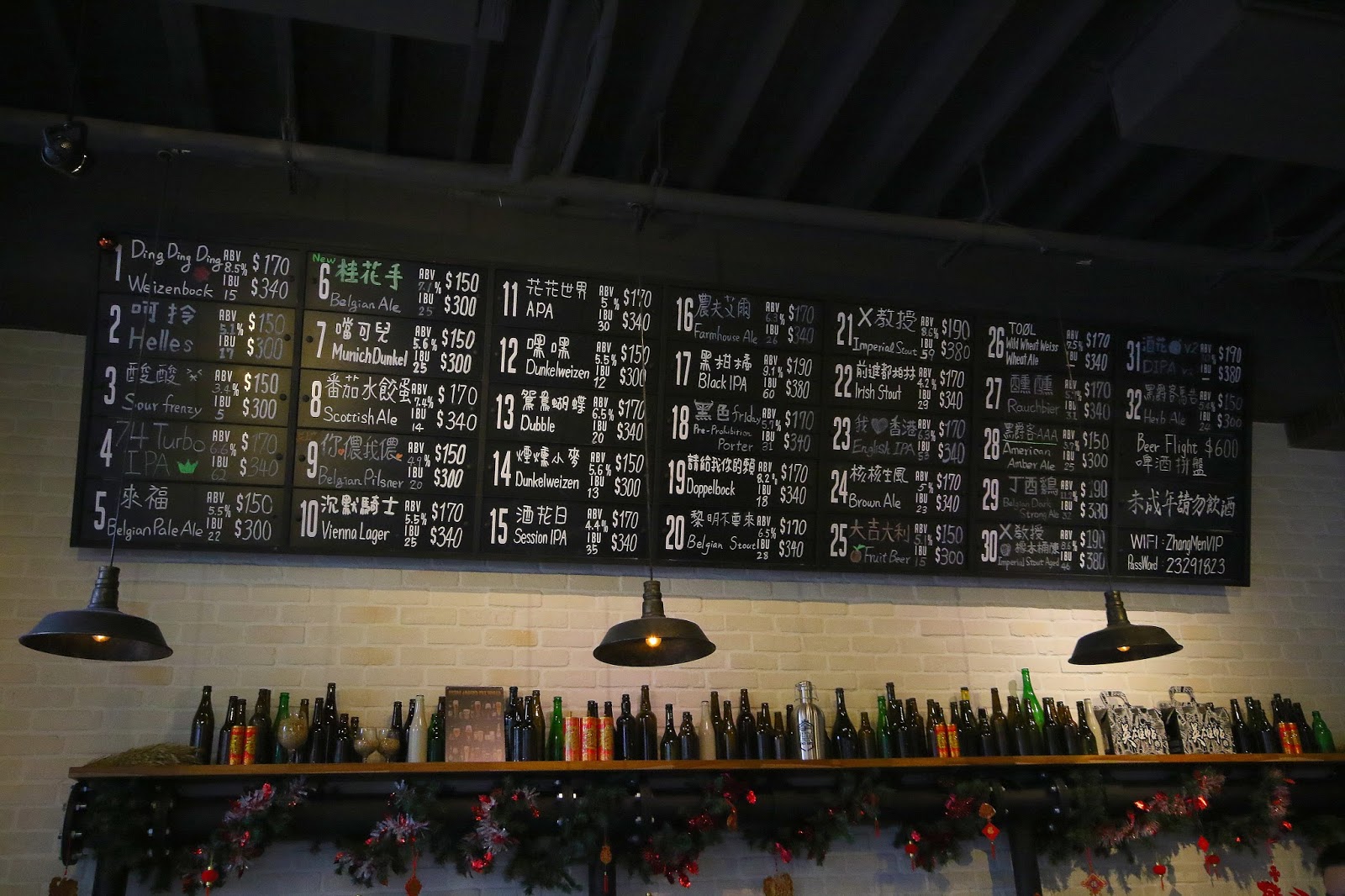 32種精釀啤酒的口味就掛在牆上,想知道更詳細的口味資料可以請教服務人員,