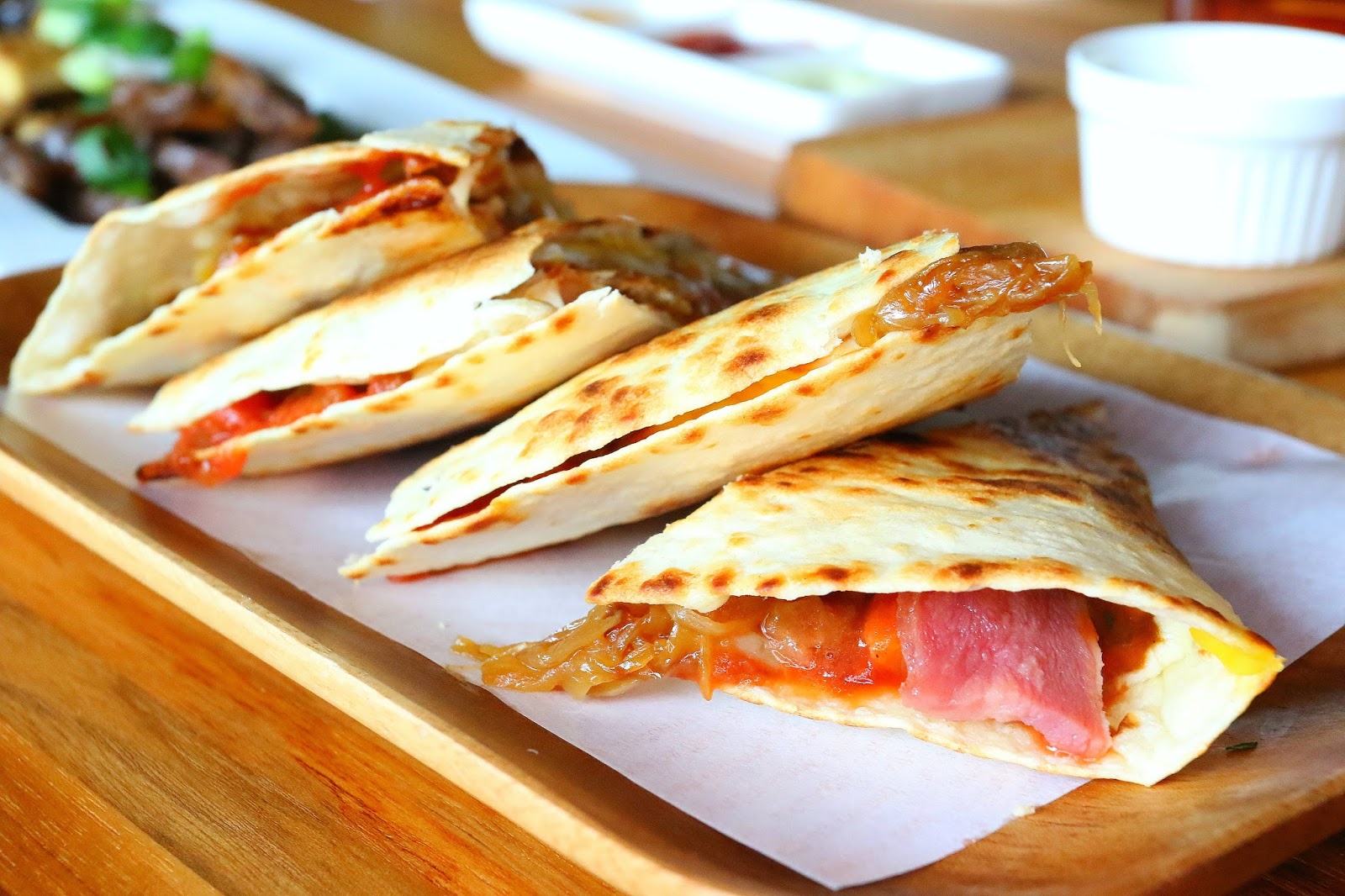 焦香酥脆的墨西哥餅皮中包著煙燻鴨胸肉與奶油炒至軟化釋出甜味的洋蔥,