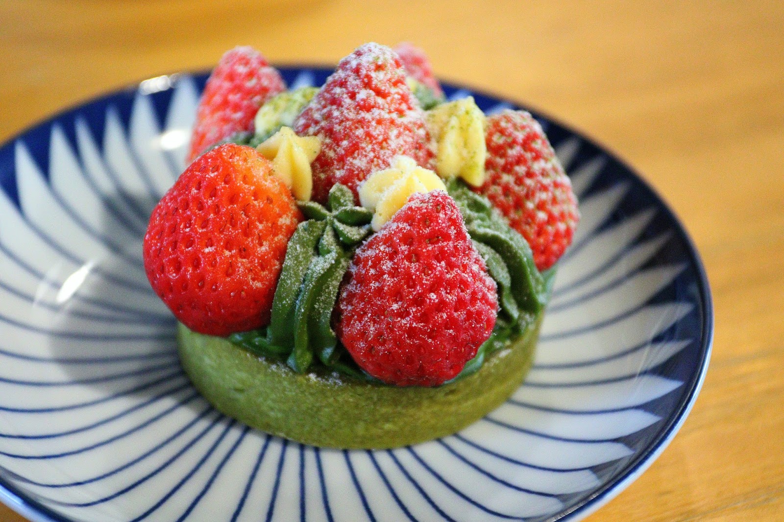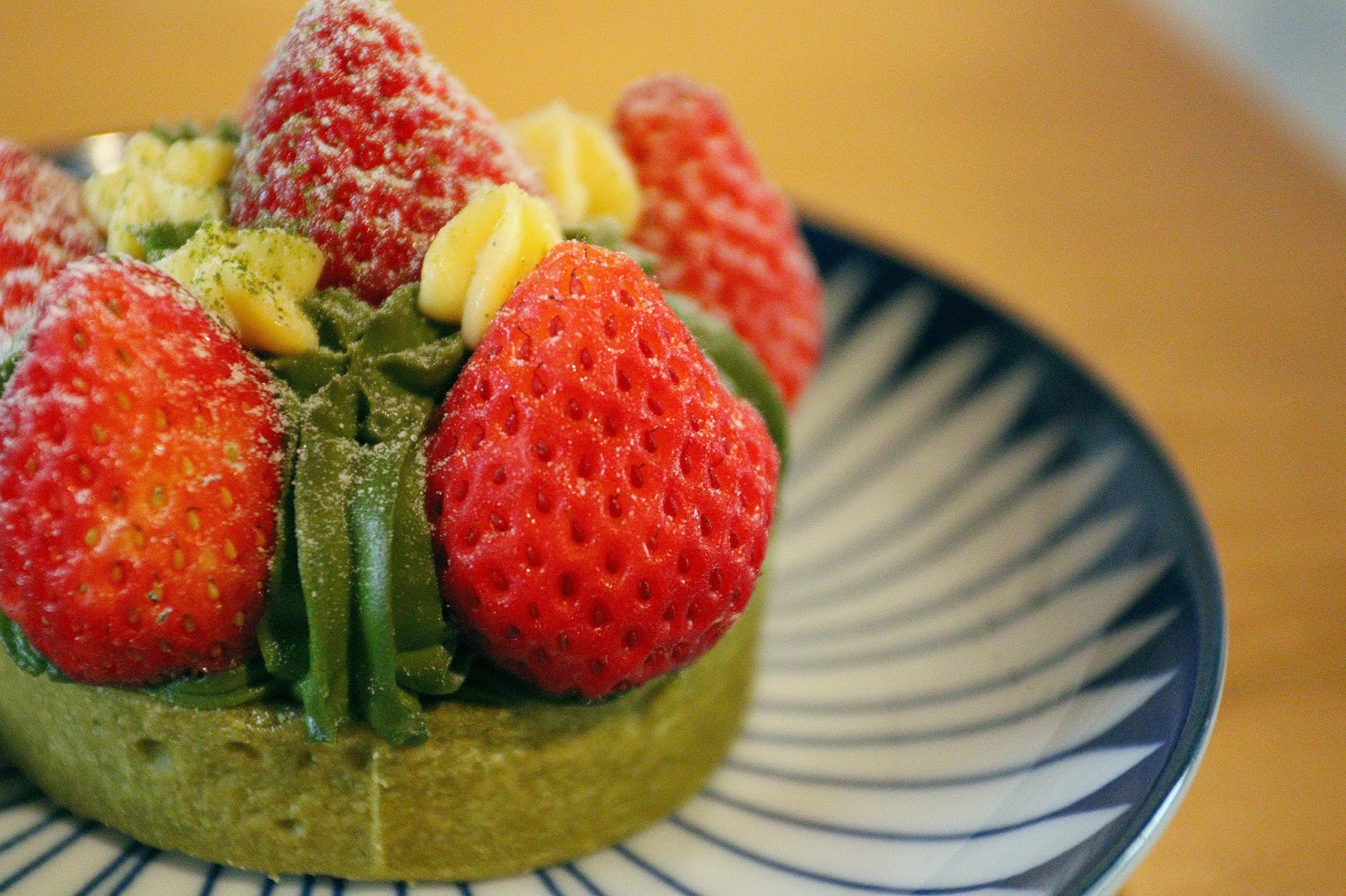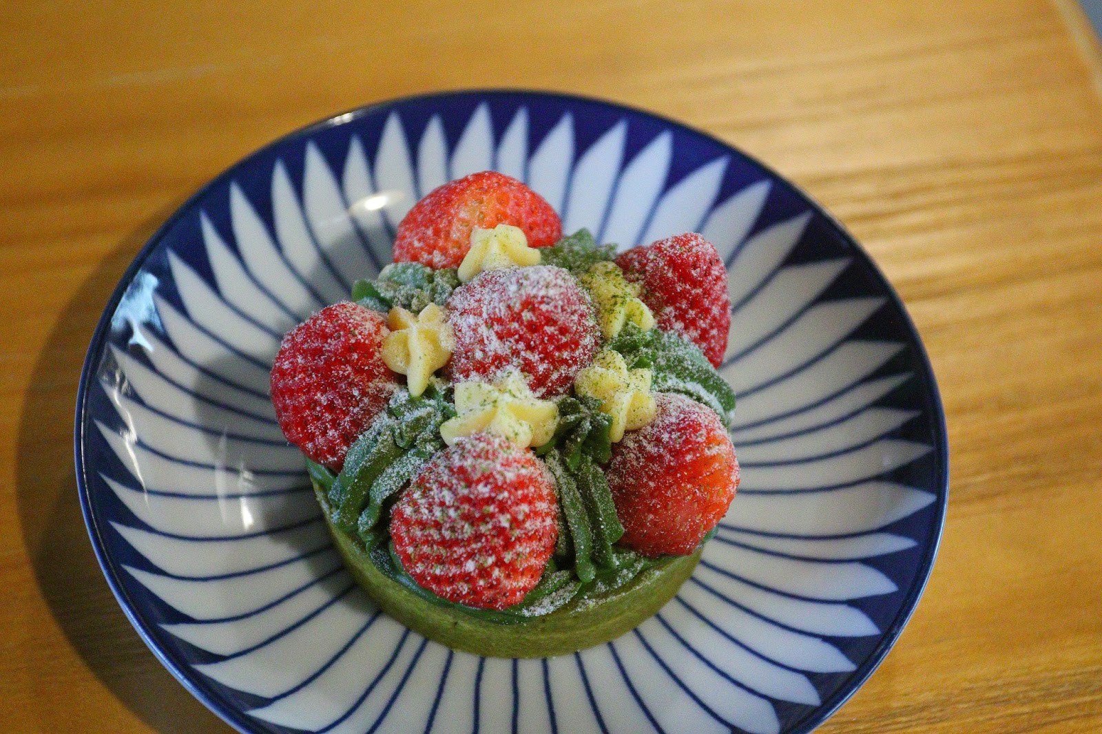塔中心的卡士達醬帶出草莓本身的酸甜味,再加上抹茶調和兩者讓整體風味更加順口,