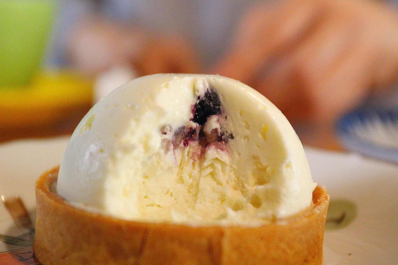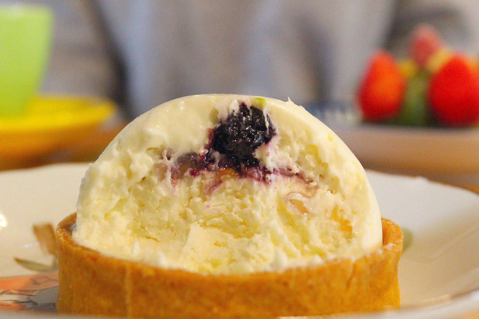 乳酪味不會太強烈,搭配中間微甜有果粒的藍莓醬剛剛好,