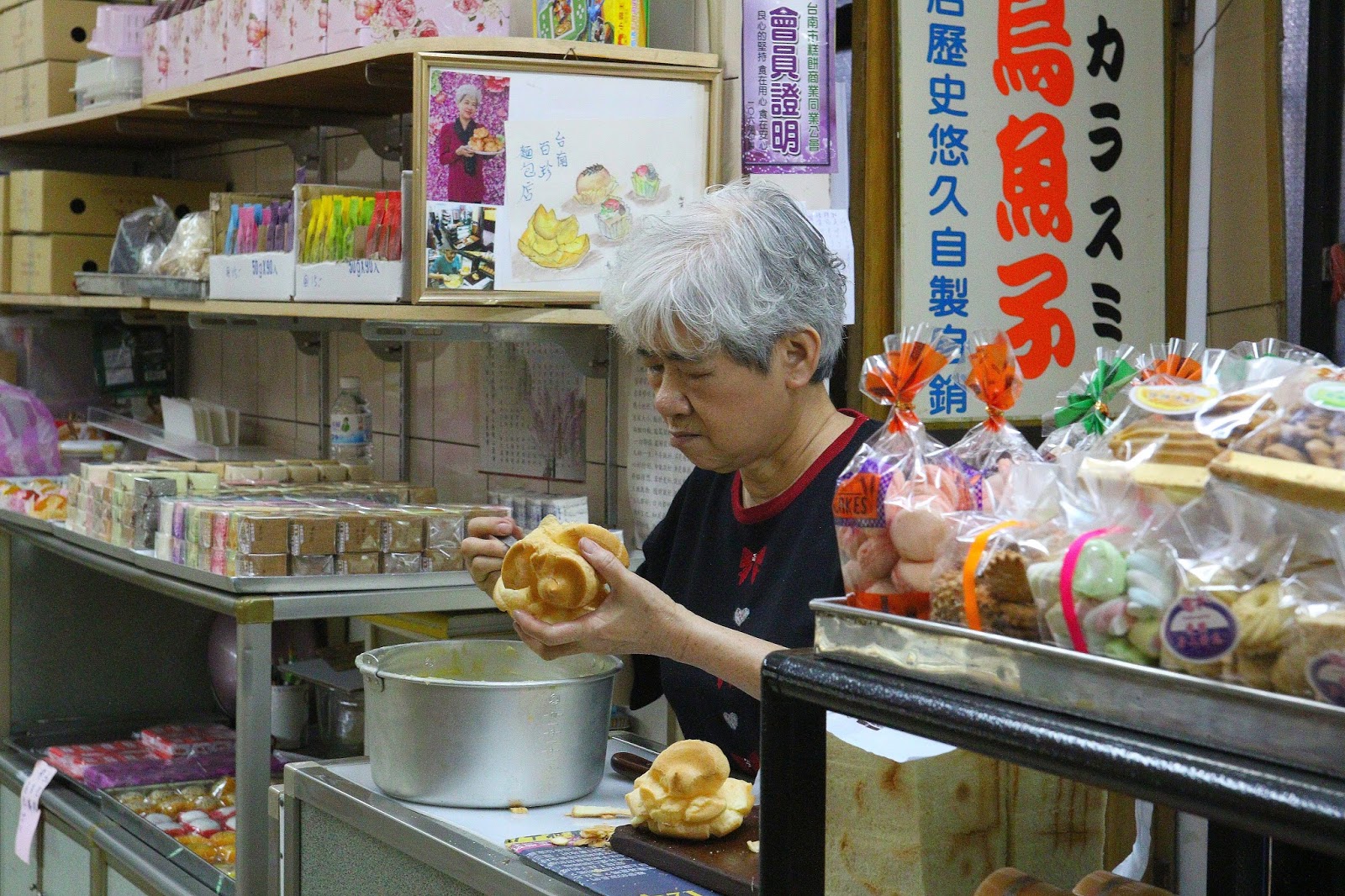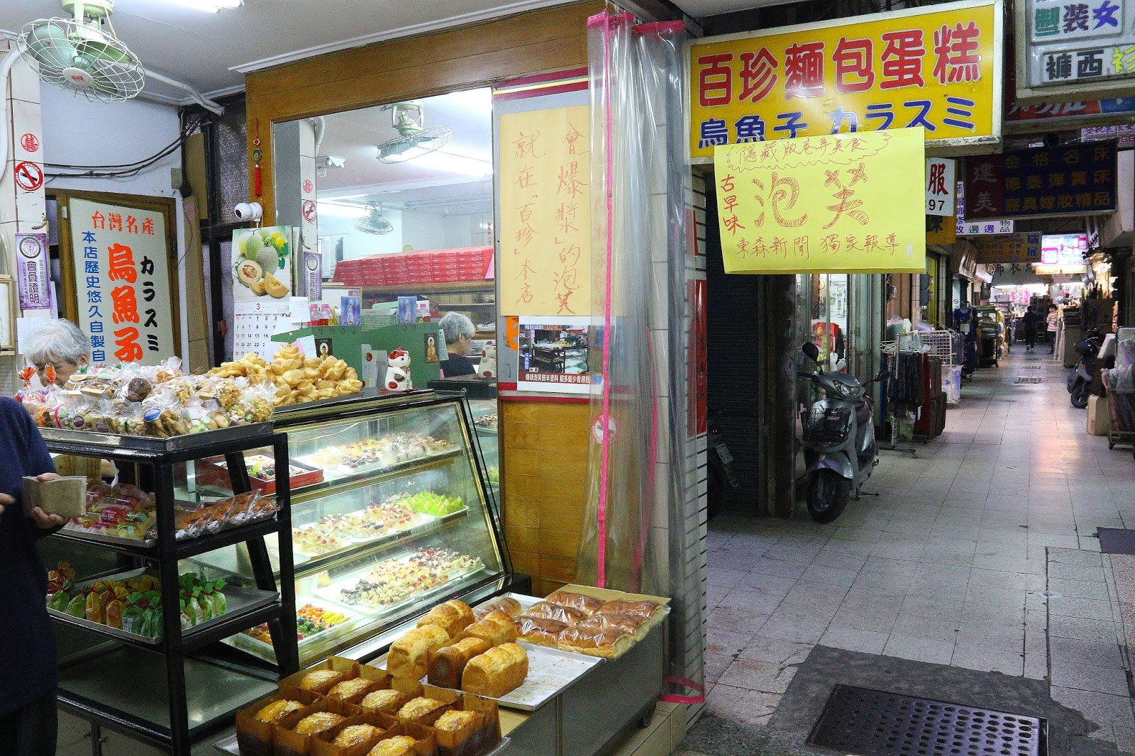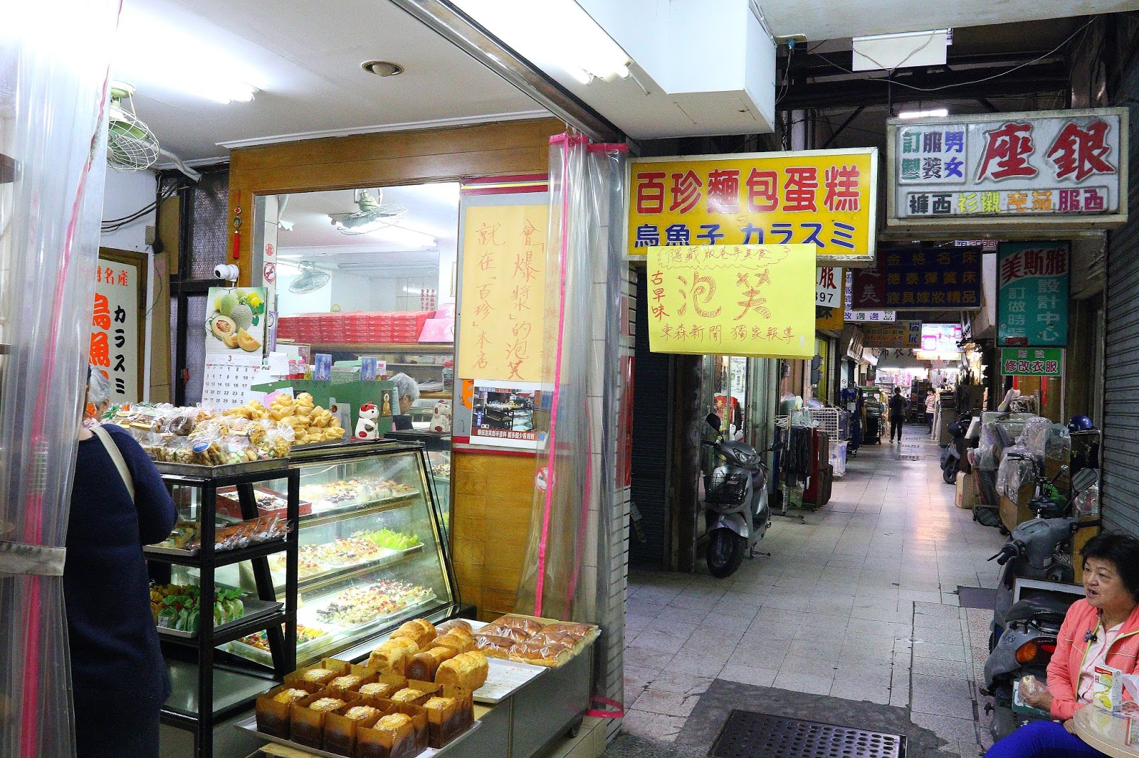 百珍在西市場靠近西門路這邊,店裡賣的是傳統口味的麵包、蛋糕、餅乾、烏魚子,