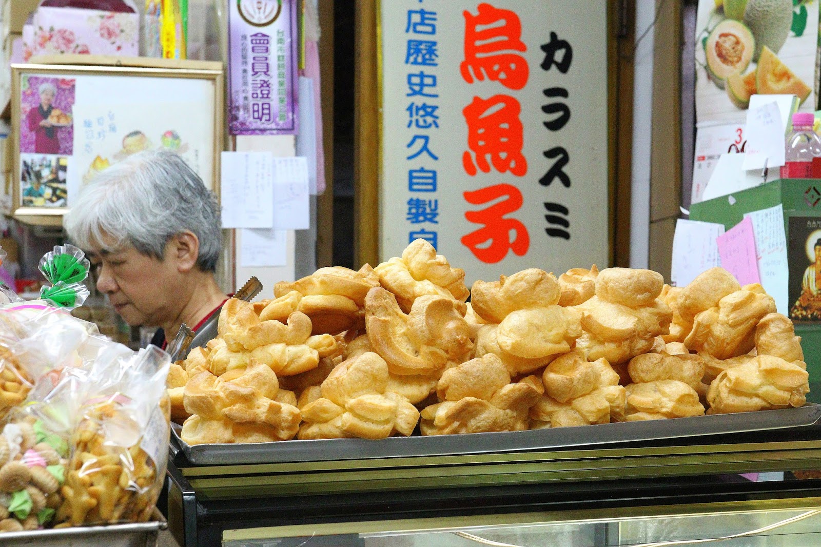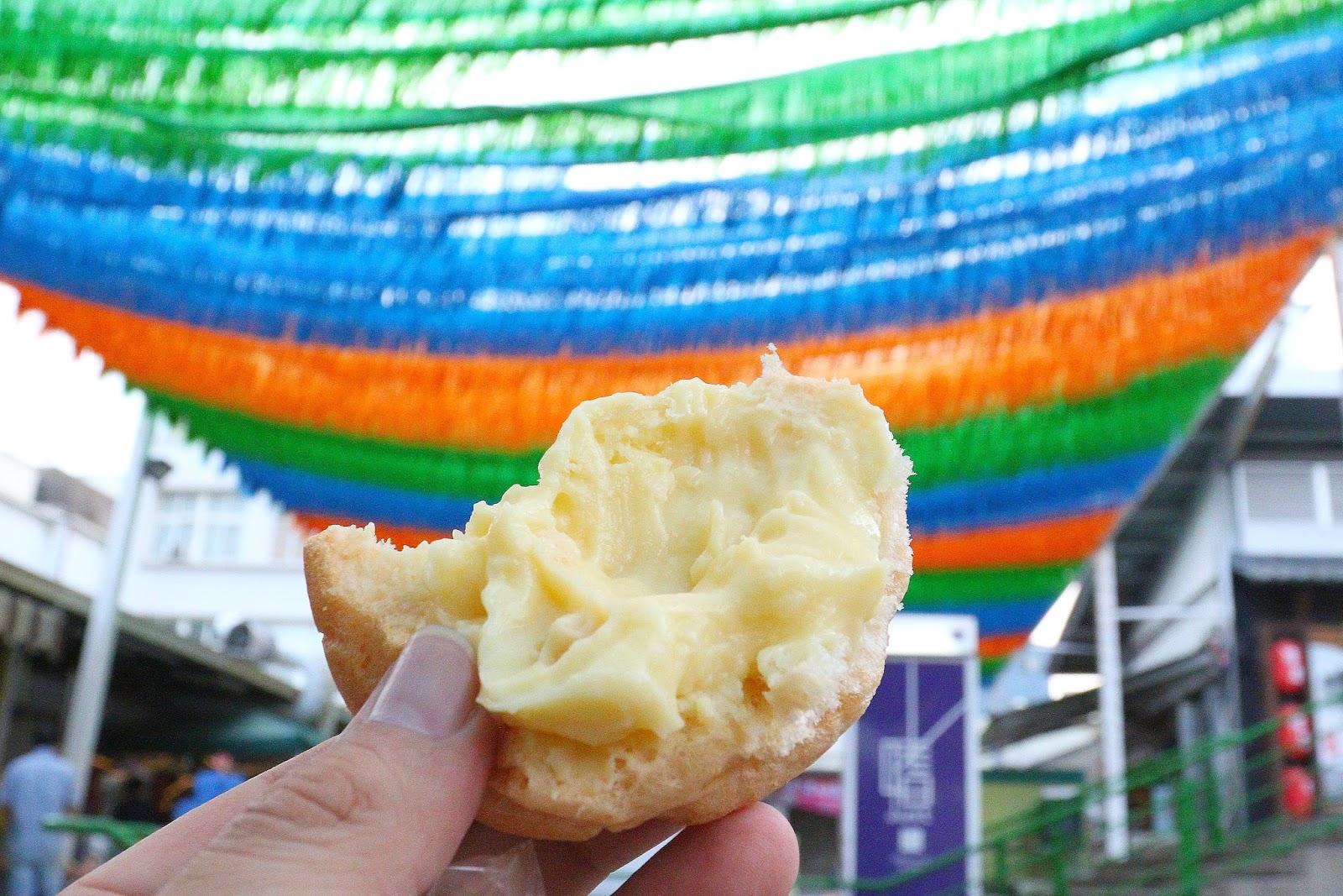 市場裡充滿著濃濃人情味,一旁大姊以為我們是外地觀光客熱心的跟我們推薦著大泡芙,