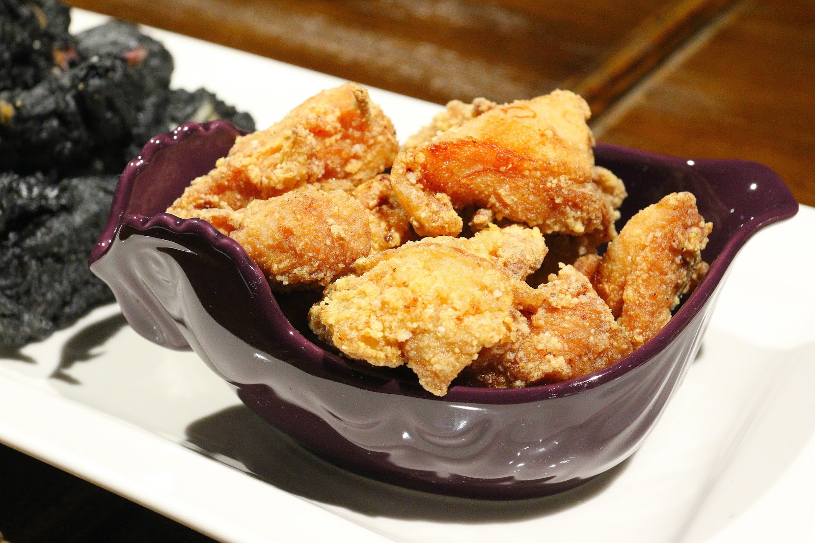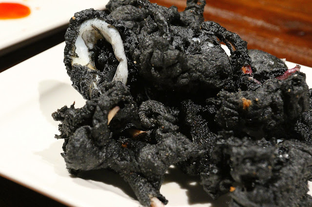 炸魷魚的外層應該是拌了墨魚汁的粉漿,