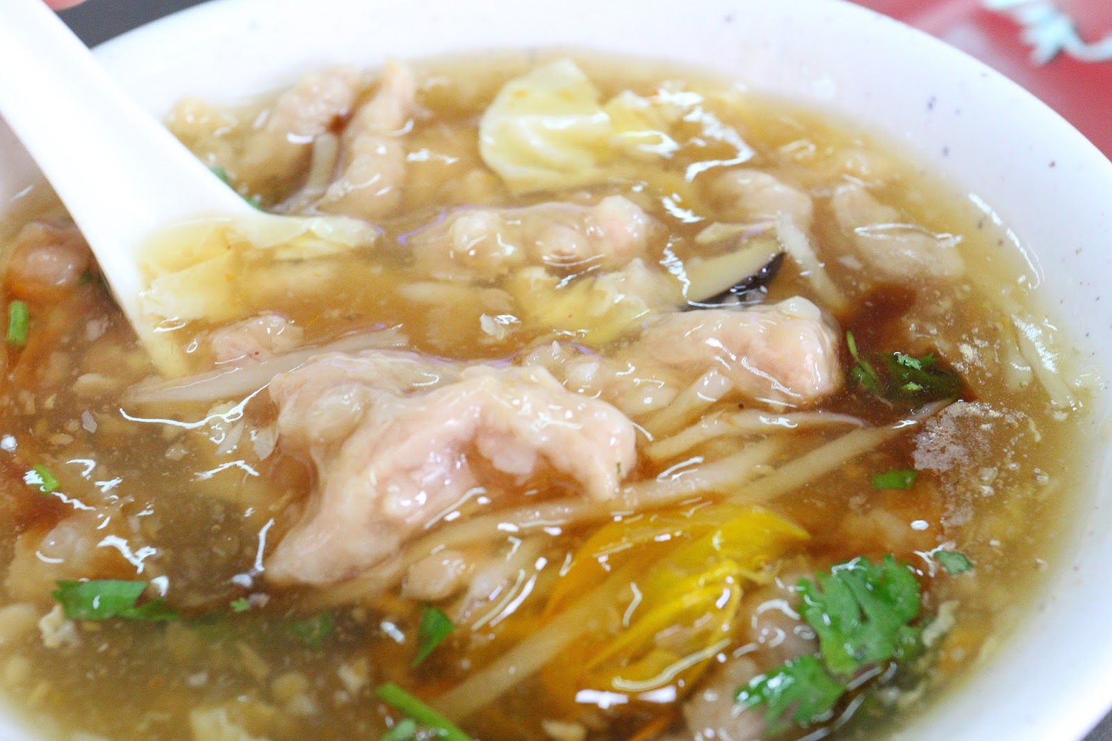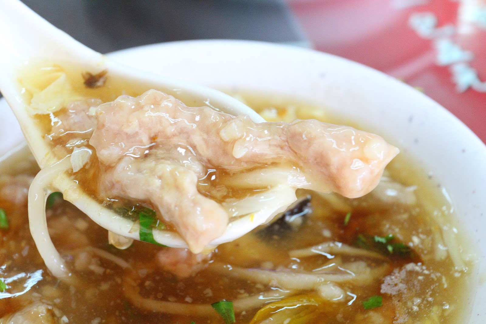 肉羹表層有裹上太白粉,跟羹湯一起入口會有一致的滑口感,