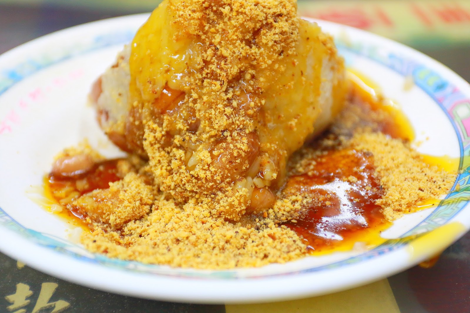 還有淋上甜甜的醬油膏與花生粉,