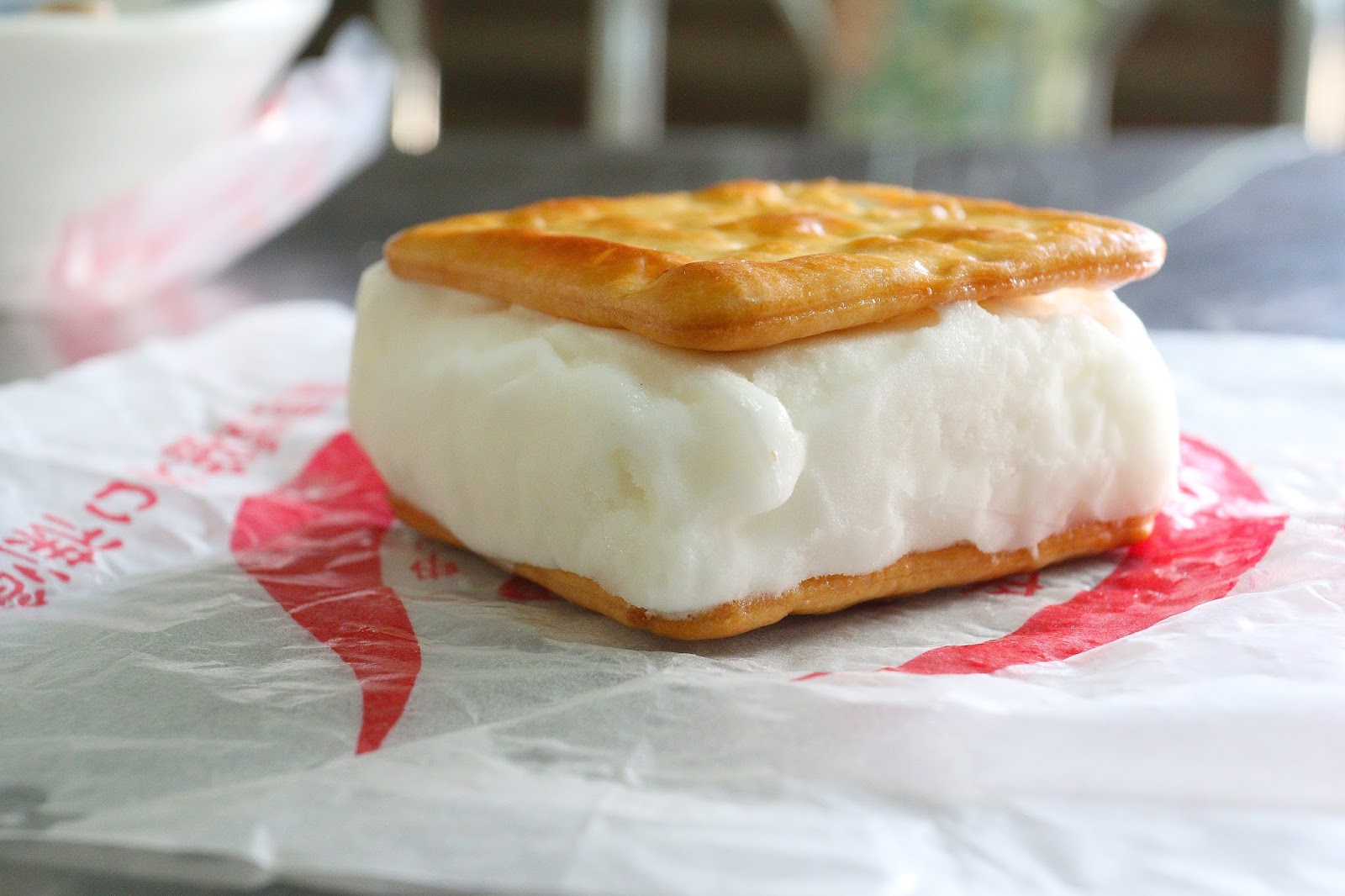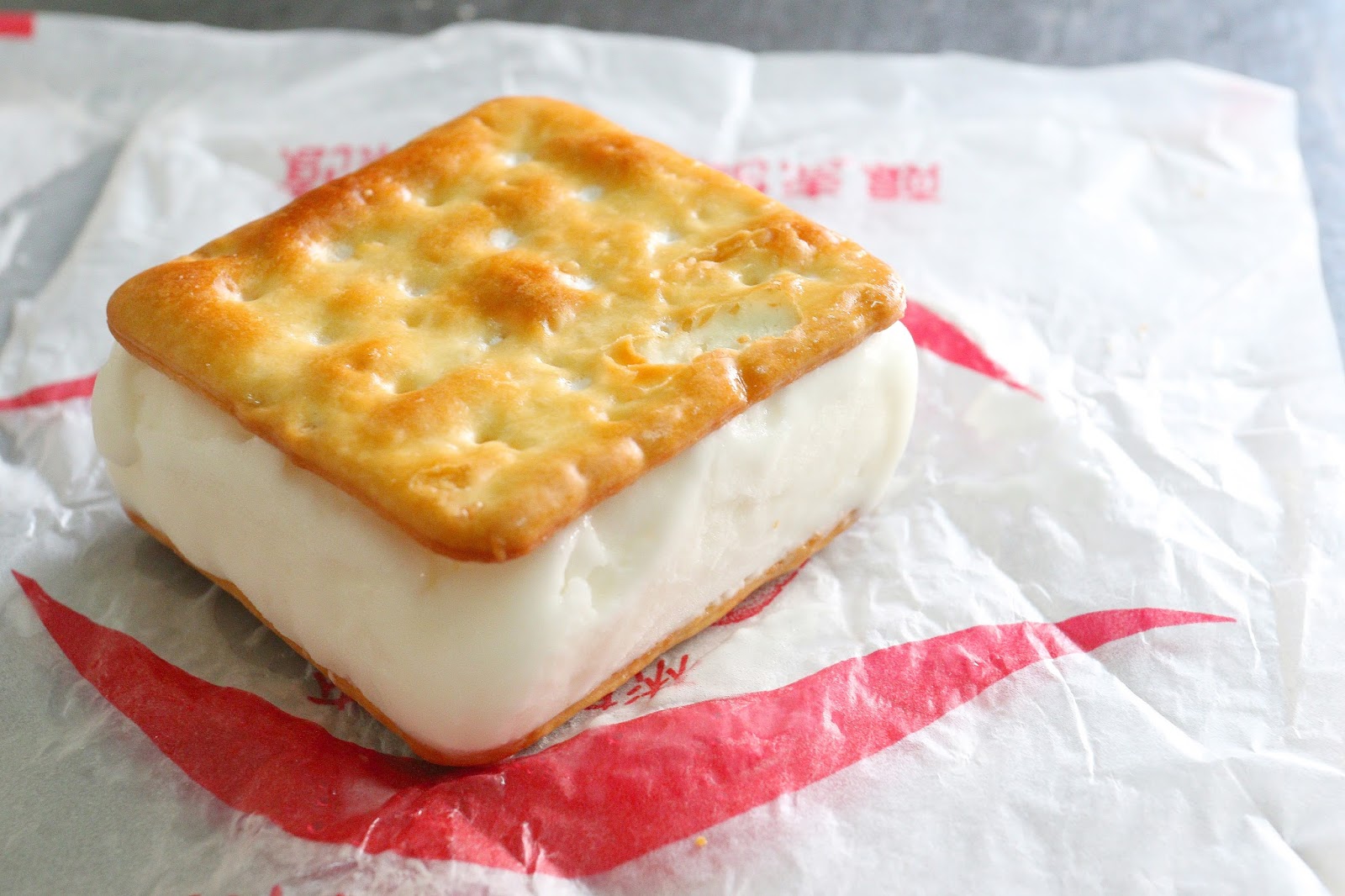 餅乾的鹹香搭配中間冰淇淋的香甜與奶味,在口中交織成鹹甜傳統風味怎麼吃都不膩,