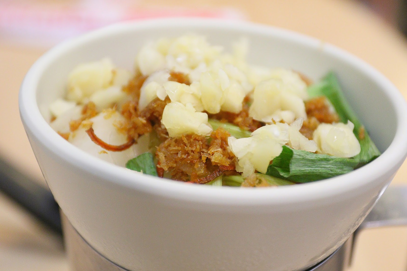 這碗裡有蒜碎、蔥段、芹菜、洋蔥、扁魚碎,