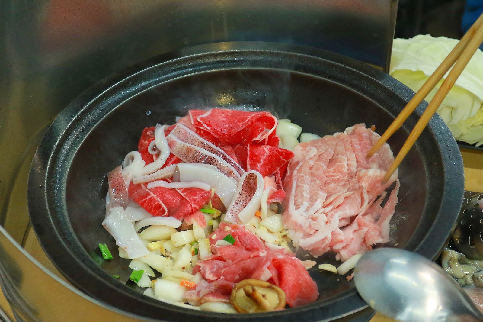 後續加點的肉類可以選擇生的,或者像這樣由店家幫你拌炒過再端上桌,